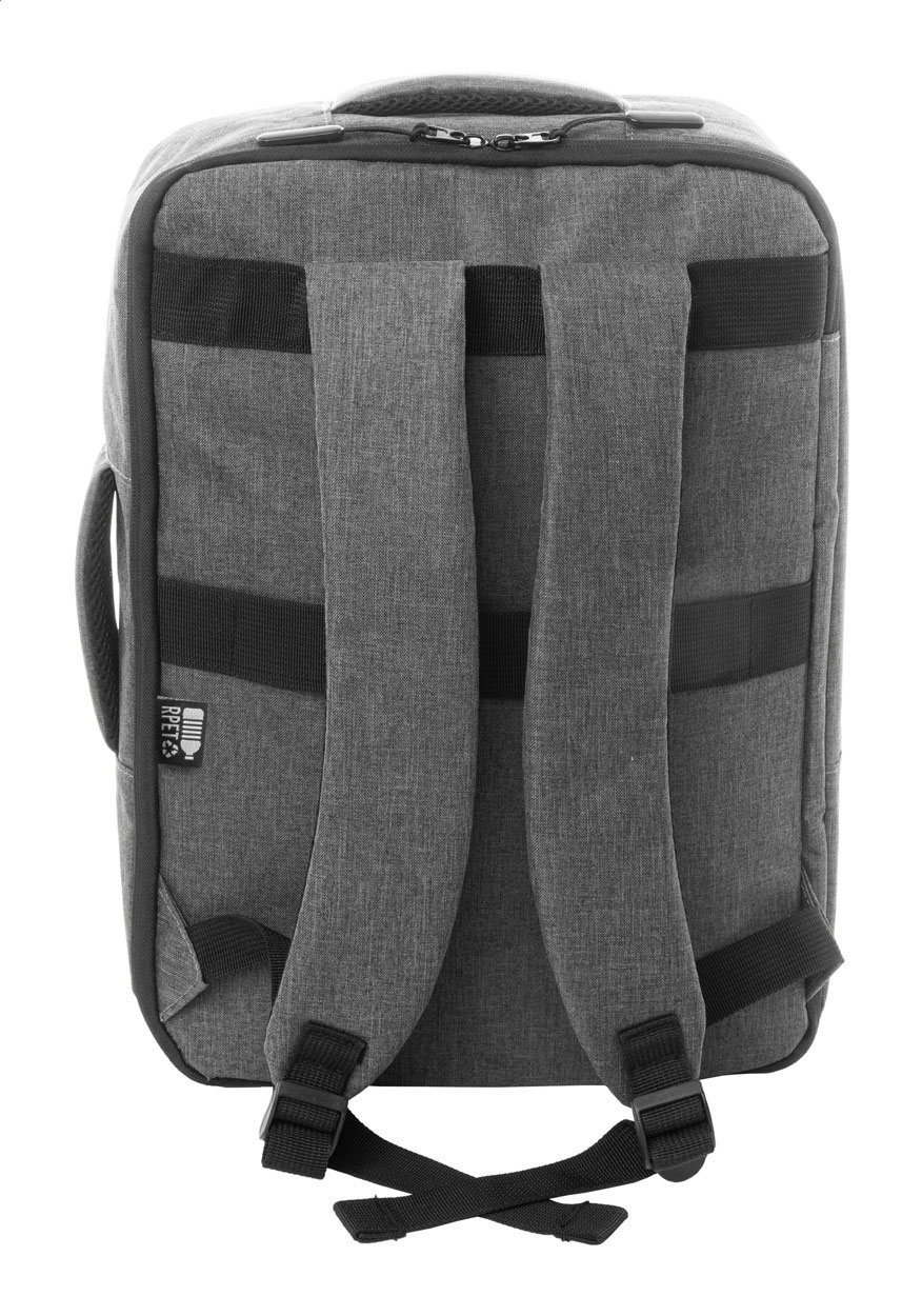 Dvojfunkční RPET batoh a taška na dokumenty s přihrádkou na zip a polstrovanou přihrádkou na notebook (15"). S popruhem na vozík, polstrovanými zády a ramenními popruhy. Polyester 300D RPET, s výrazným štítkem RPET.