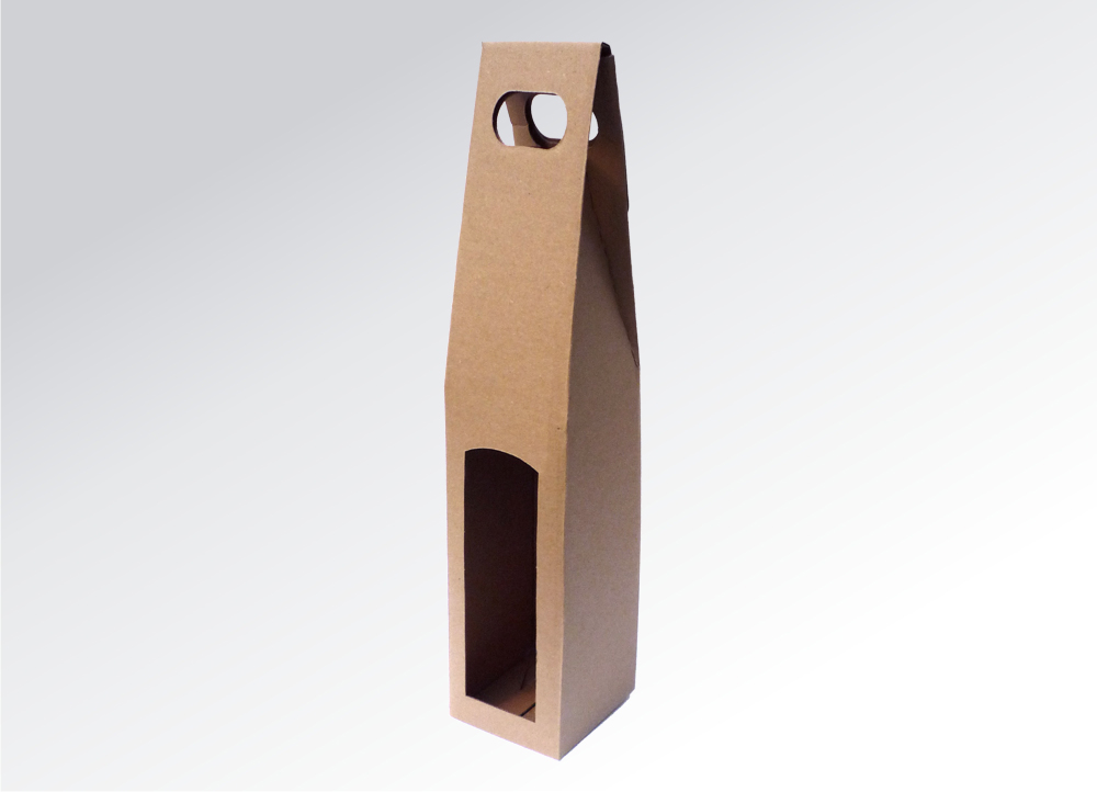 Papírový obal s průhmatem na jednu lahev vína. Přírodní hnědá.