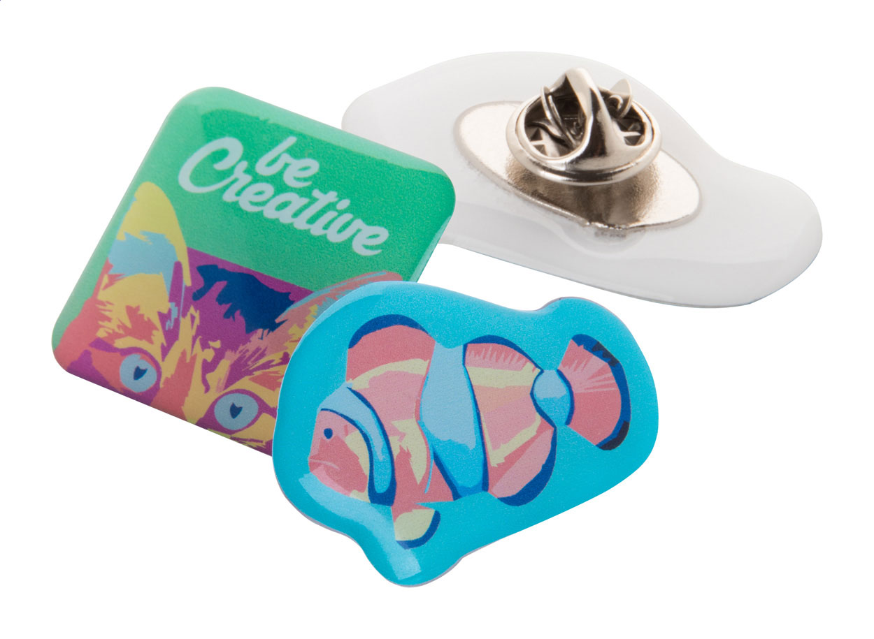 Zakázková výroba zaoblených odznaků s kovovým špendlíkem a epoxy potiskem. Individuální tvar a grafika. Max. rozměr 9 cm2. Cena zahrnuje epoxy potisk, nezahrnuje tiskovou přípravu. Min. mn.: 100 ks.