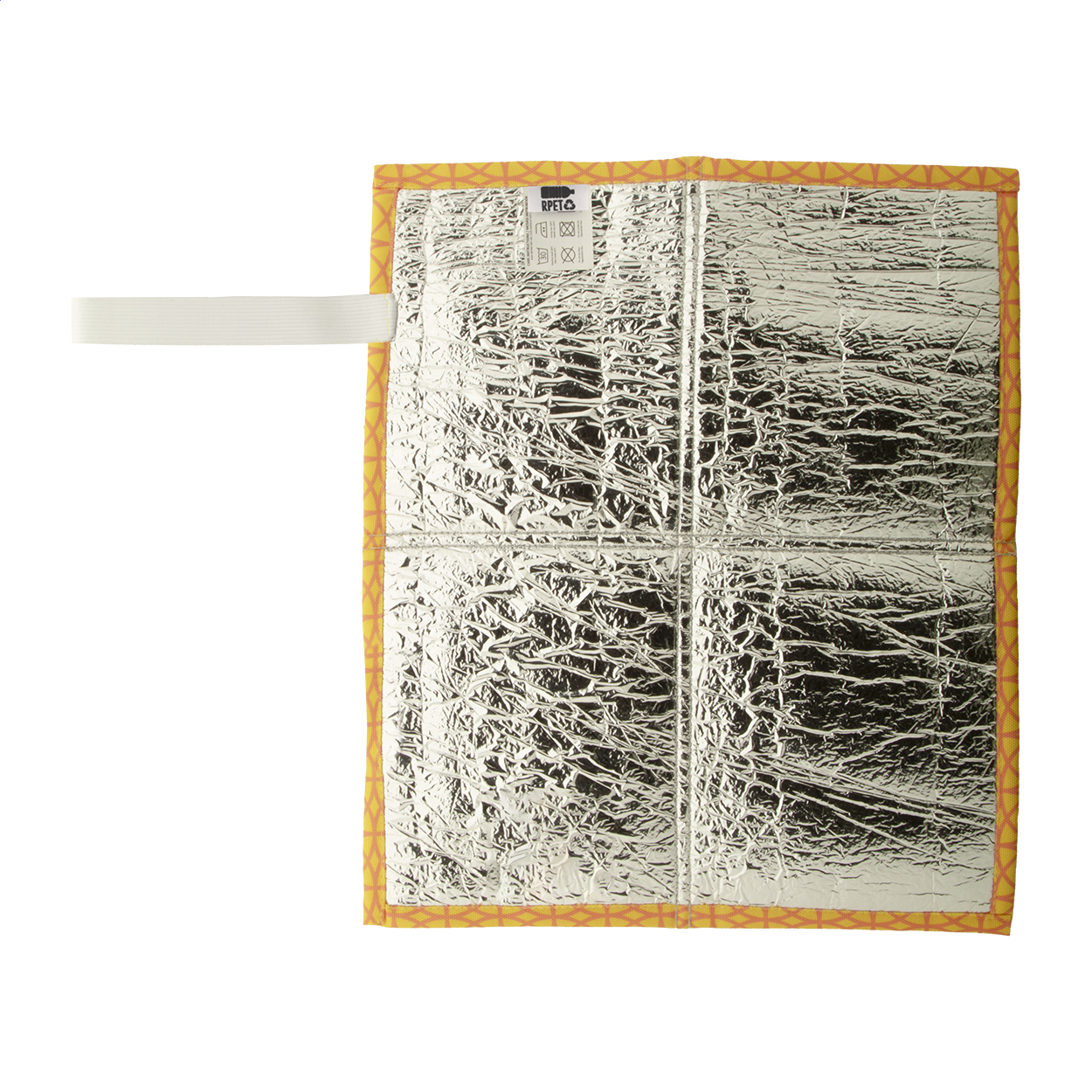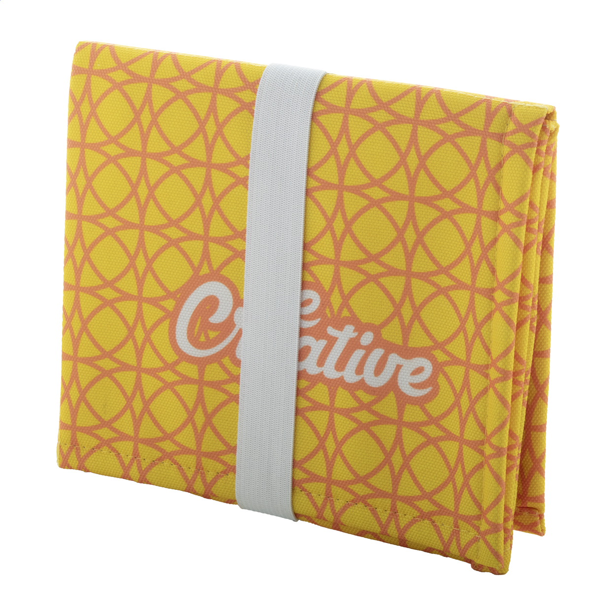 Na zakázku vyrobený skládací polštářek na stadion z 600D RPET polyesteru s izolačním hliníkovým dnem. Se sublimační tištěnou grafikou na přední straně, cena nezahrnuje tiskovou přípravu. Min. mn.: 50 ks.
