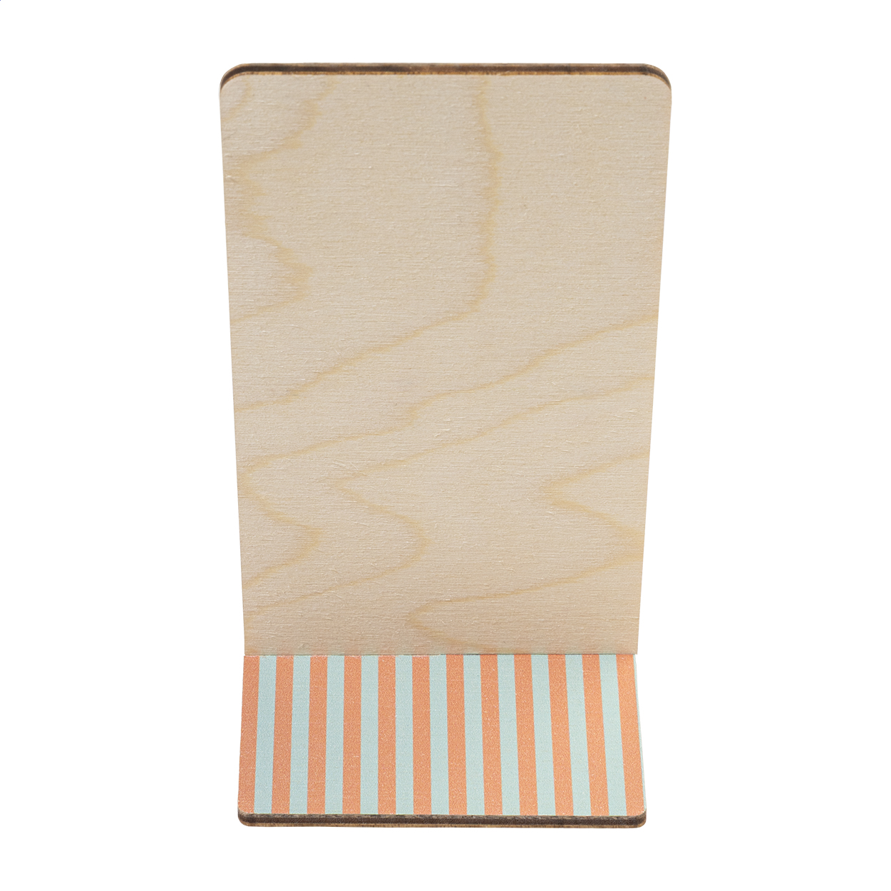 Držák na mobilní telefon na zakázku s barevným potiskem z březové překližky. Cena zahrnuje UV LED potisk na přední straně. Cena nezahrnuje tiskovou přípravu. Dodává se v plochém balení. Min. mn.: 50 ks.
