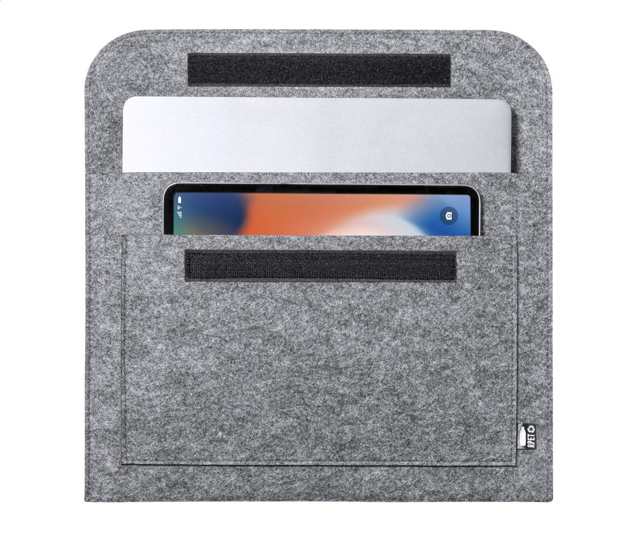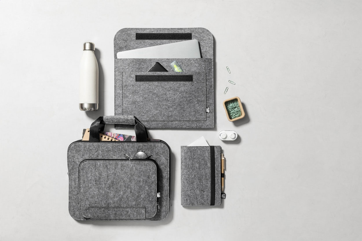 RPET filcové pouzdro na laptop s přední kapsou a zapínáním na suchý zip. S výrazným štítkem RPET.
