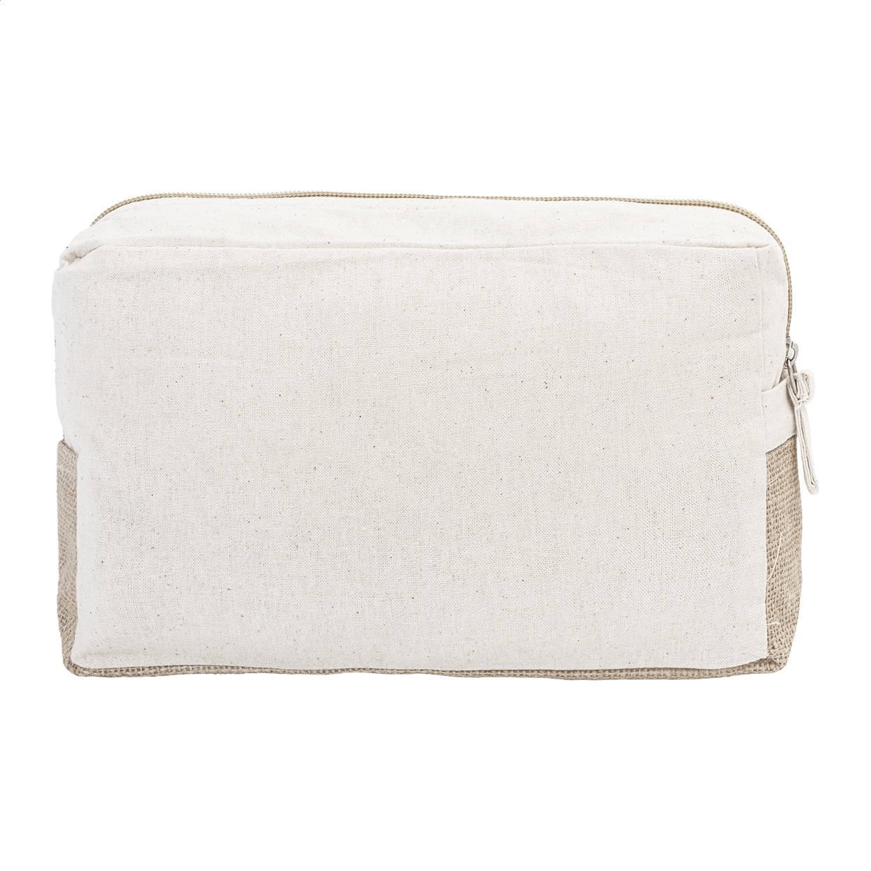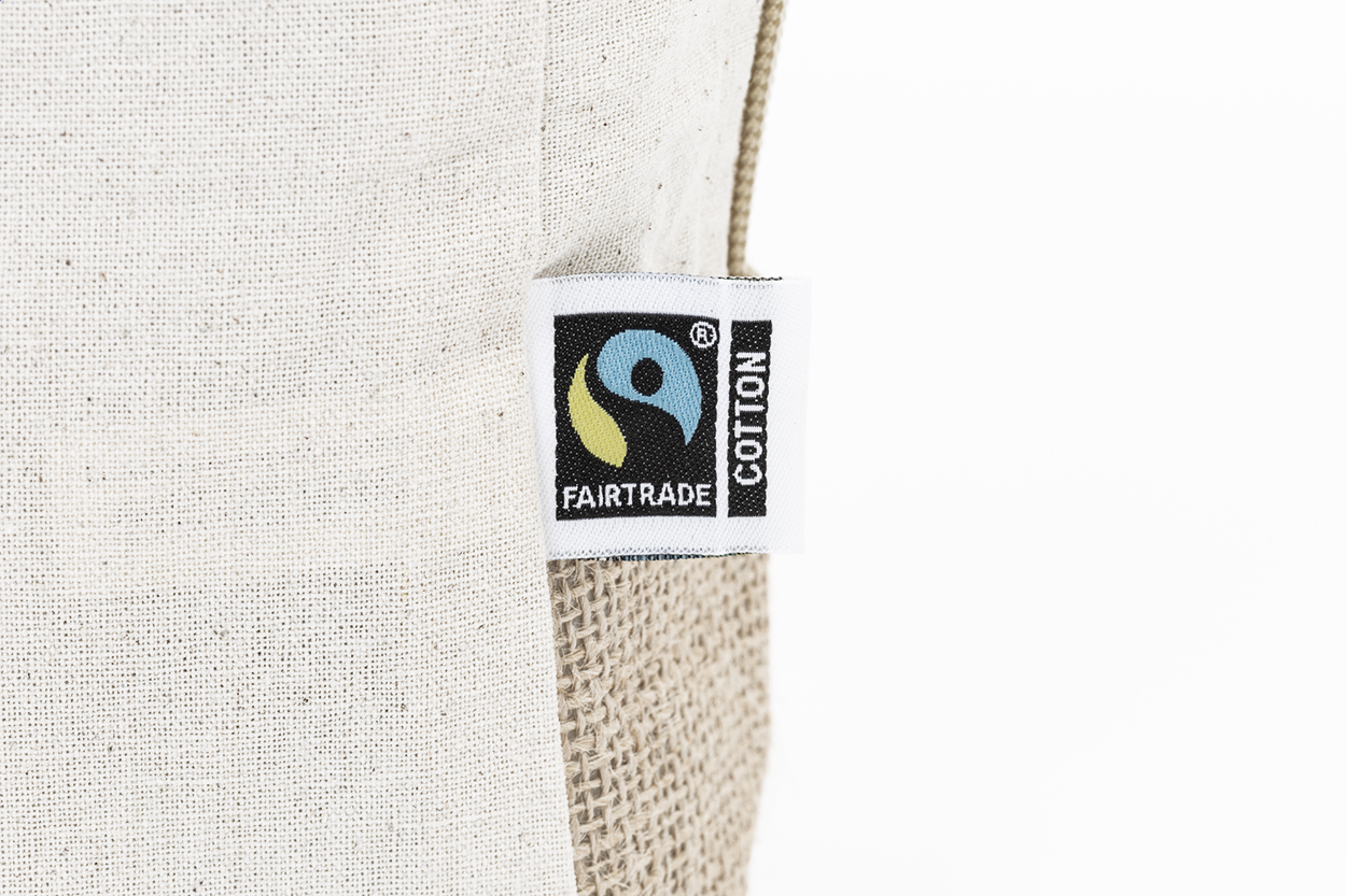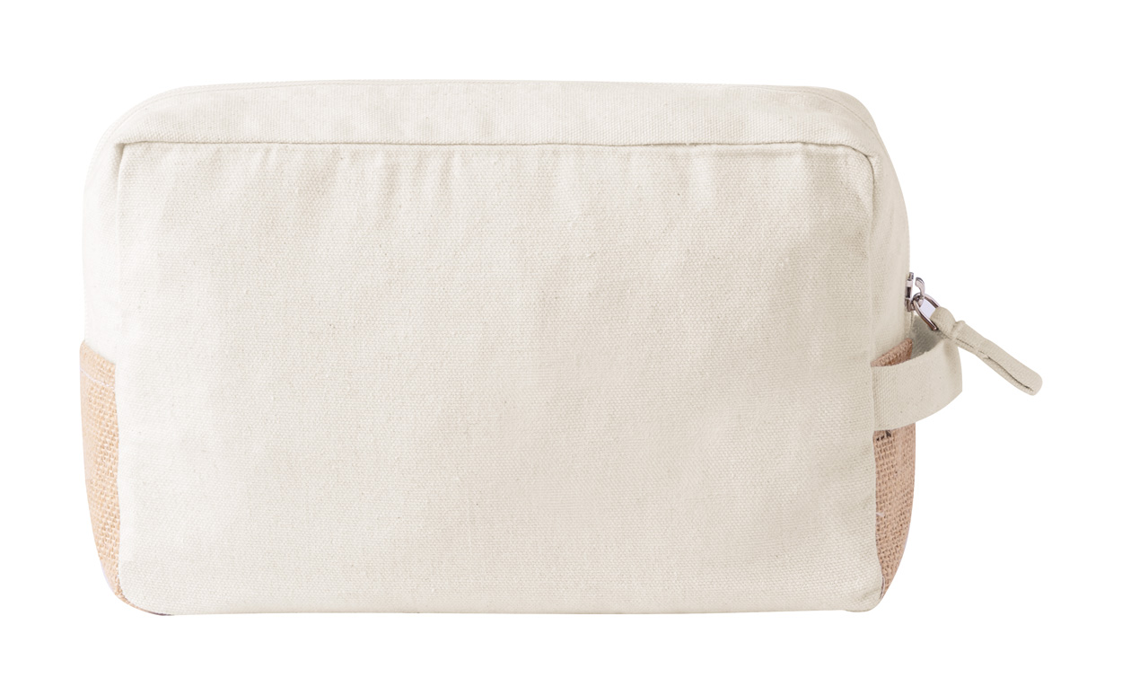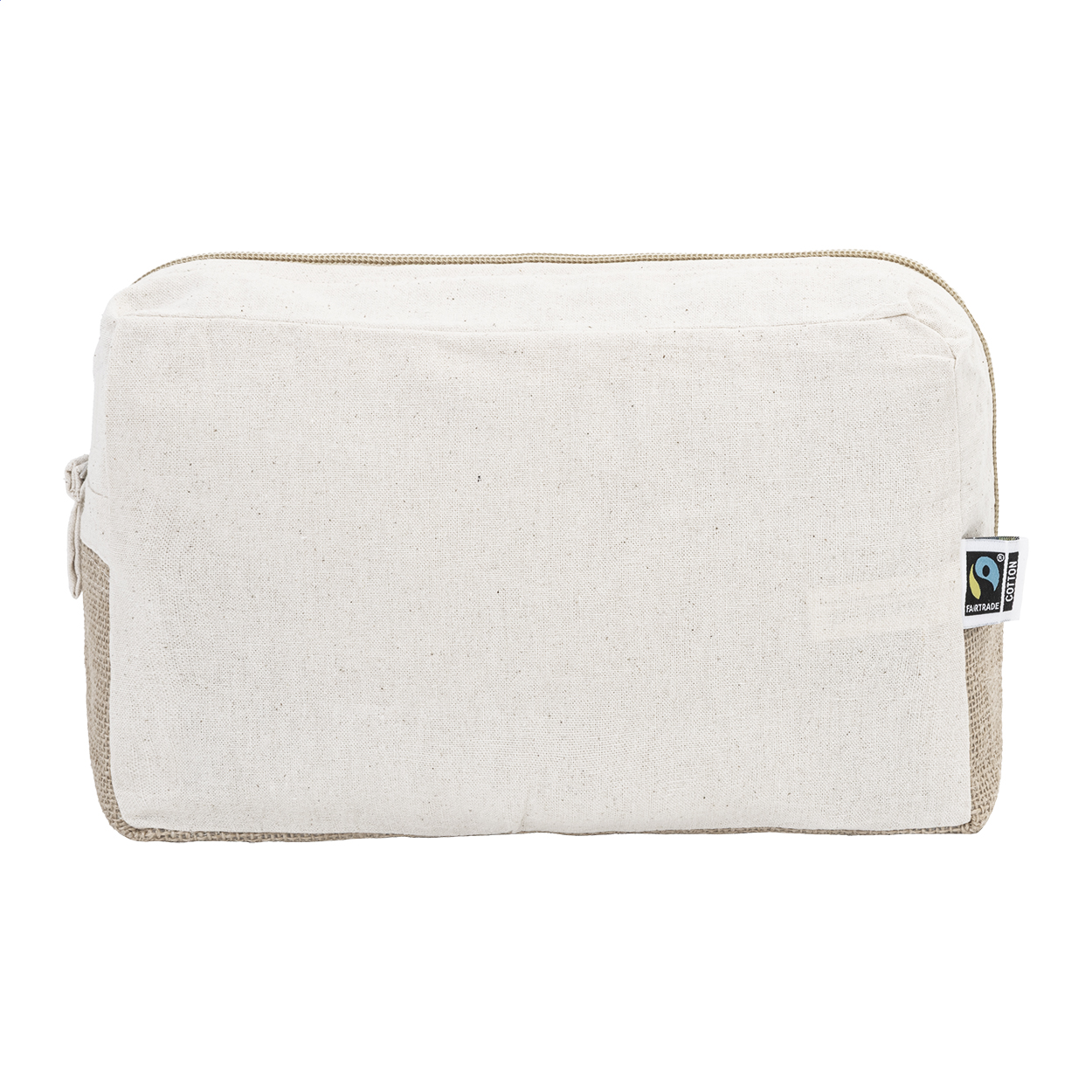 Kosmetická taštička na zip z Fairtrade bavlny a laminované juty, s výrazným Fairtrade štítkem. 100% Fairtrade bavlna, 180 g/m².