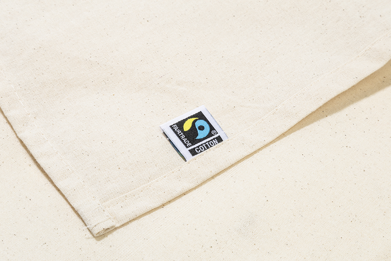 Fairtradová bavlněná zástěra s přední kapsou a výraznou etiketou Fairtrade. 100% Fairtrade bavlna, 180 g/m².