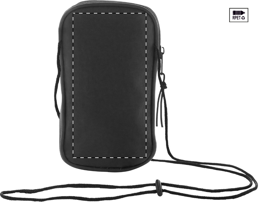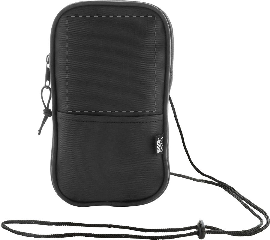 Voděodolná RPET crossbody taška na mobilní telefon s hlavní přihrádkou na zip, přední kapsou a nastavitelnou šňůrkou. Polyester RPET 600D potažený PU, s výrazným štítkem RPET.