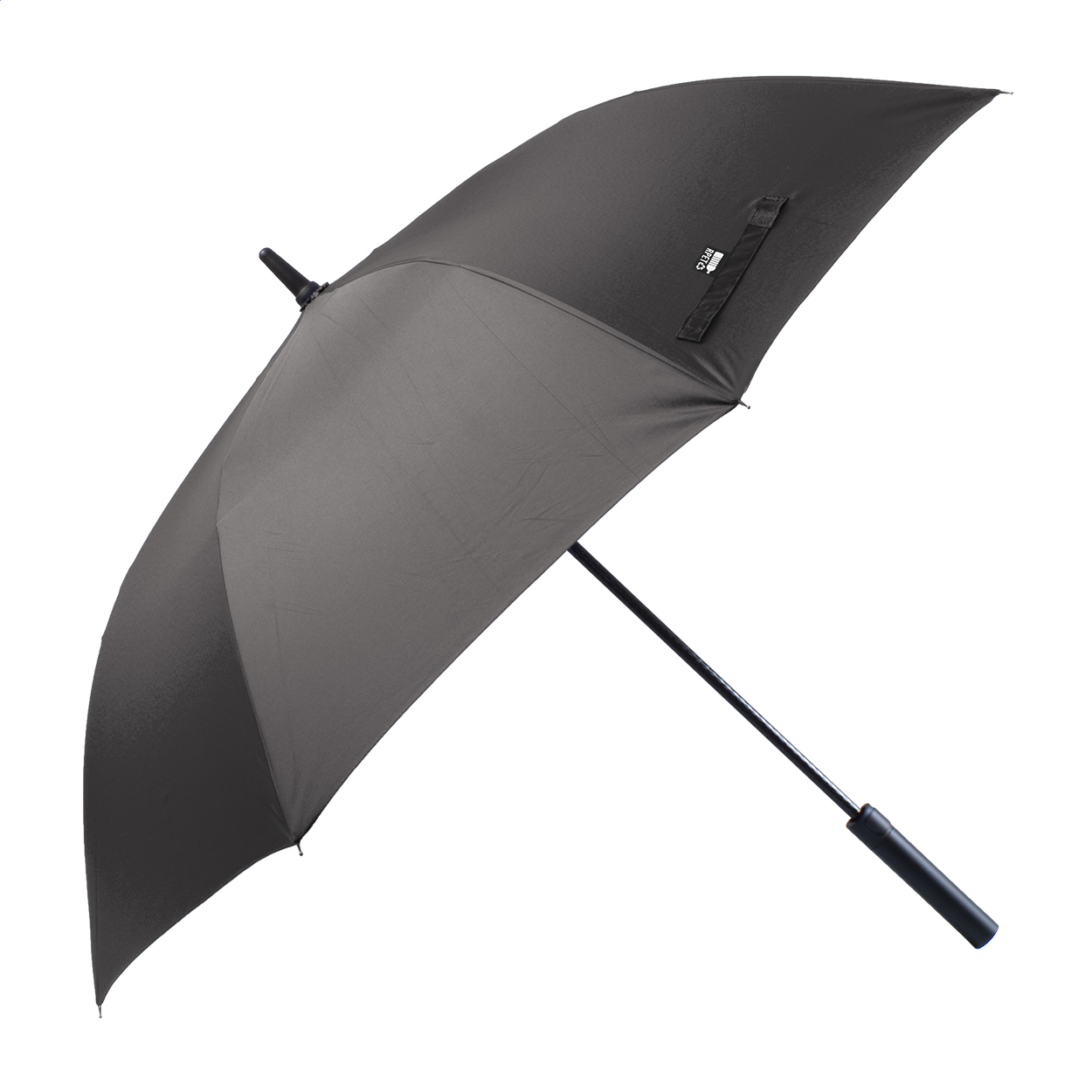 Velký, automatický větruodolný deštník s 8 panely, celosklolaminátová rukojeť a rám, ABS rukojeť. Pongee 190T RPET. S výrazným štítkem RPET.