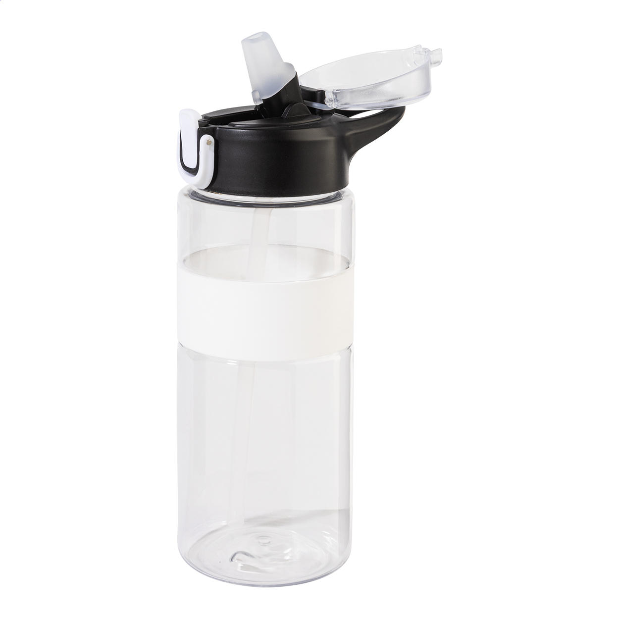 Sportovní láhev z RPET se silikonovým úchopem, automaticky otevíratelným odklápěcím víčkem s integrovaným brčkem, silikonovým náustkem a bezpečnostním zámkem. 700 ml. Bez BPA. Nevhodné pro sycené nápoje.