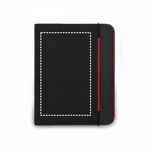 Složka A4 z PU a 800D s vnitřním povrchem z mikrovlákna. s elastickým páskovým uzávěrem. Obsahuje blok se 40 linkovanými stránkami papírem, 3 kapsy a držák na pero (pero není součástí balení)