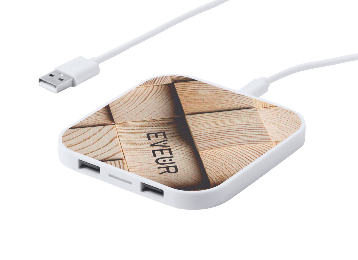 Nabíječka je vyrobena z odolného bílého plastu a doplněna o dva USB porty, které umožňují současné nabíjení více zařízení – například telefonu, sluchátek nebo powerbanky. Maximální výstupní proud je 2 100 mA, což zaručuje rychlé a efektivní nabíjení.