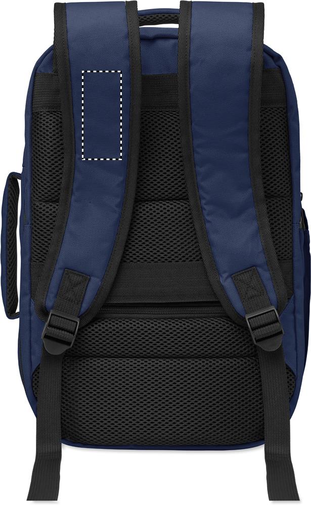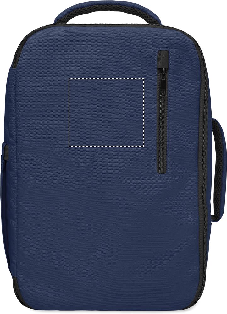 Kabinový batoh vyrobený z polyesteru 600D RPET s otevíráním pod úhlem 180o. Hlavní přihrádka se dvěma otevřenými oddíly, polstrovaná kapsa na 15'' notebook a popruh na zavazadlo.