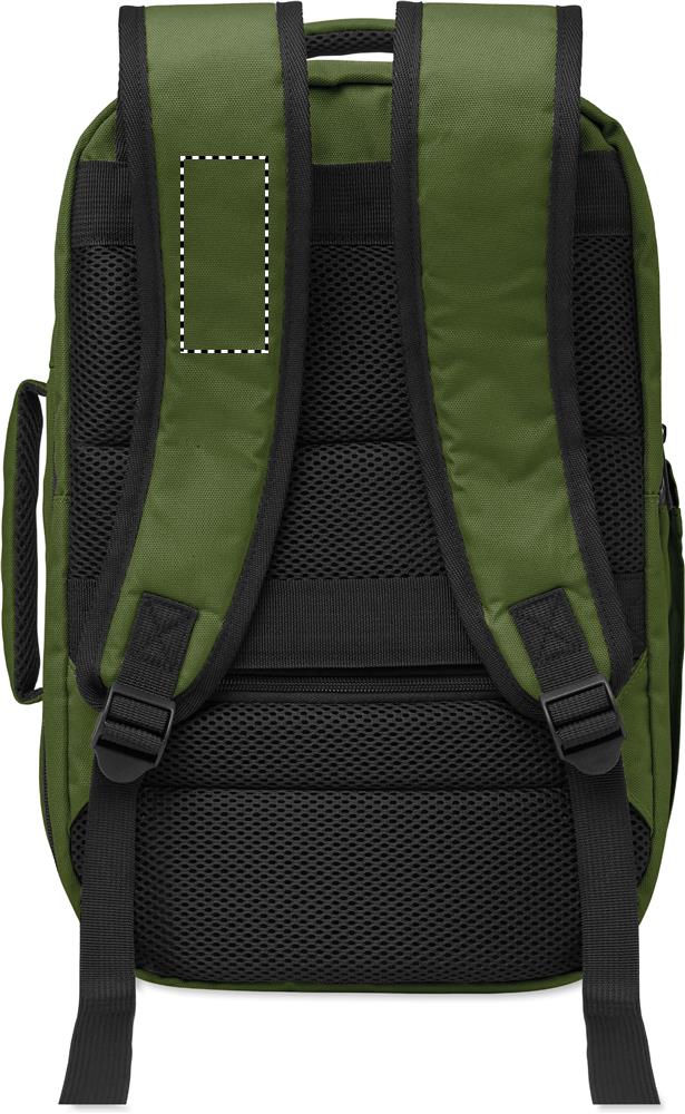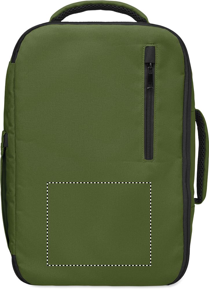 Kabinový batoh vyrobený z polyesteru 600D RPET s otevíráním pod úhlem 180o. Hlavní přihrádka se dvěma otevřenými oddíly, polstrovaná kapsa na 15'' notebook a popruh na zavazadlo.