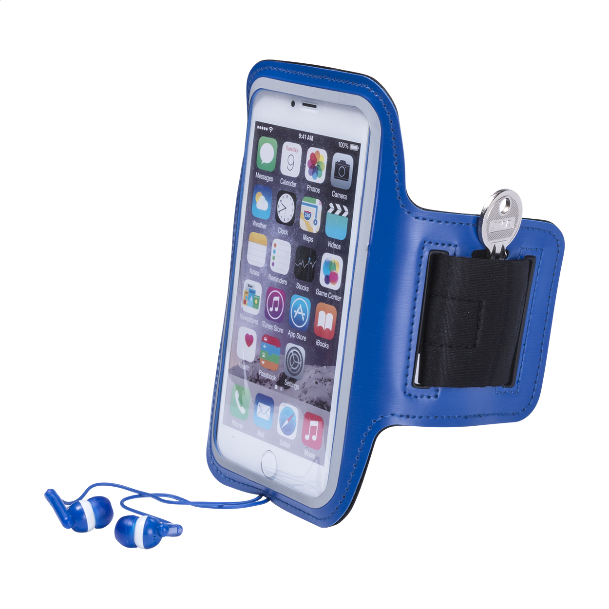 Obal na mobil na paži z PU kůže s dotykovým okénkem a reflexními částmi. Vhodný pro mobily s úhlopříčkou do 6 palců.