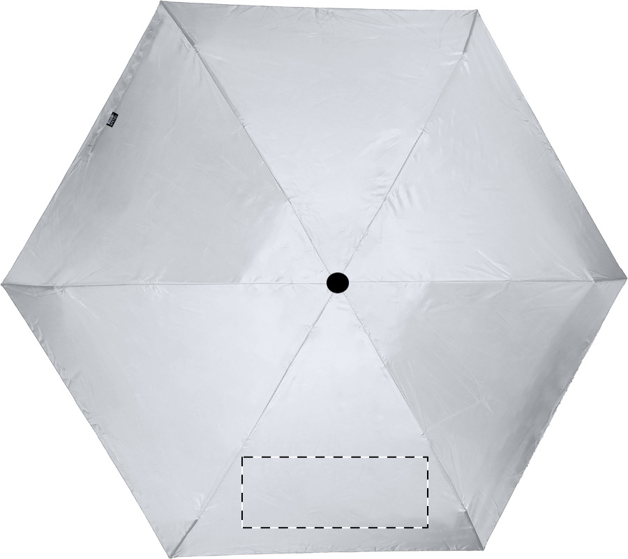 Manuální, větruodolný 3-skládací ultralehký (130 g) mini deštník se 6 panely v pouzdru v odpovídající barvě. S kovovým rámem, sklolaminátovými žebry a kompaktní rukojetí s poutkem na ruku. Pongee 190T RPET, s výrazným štítkem RPET.