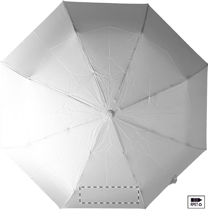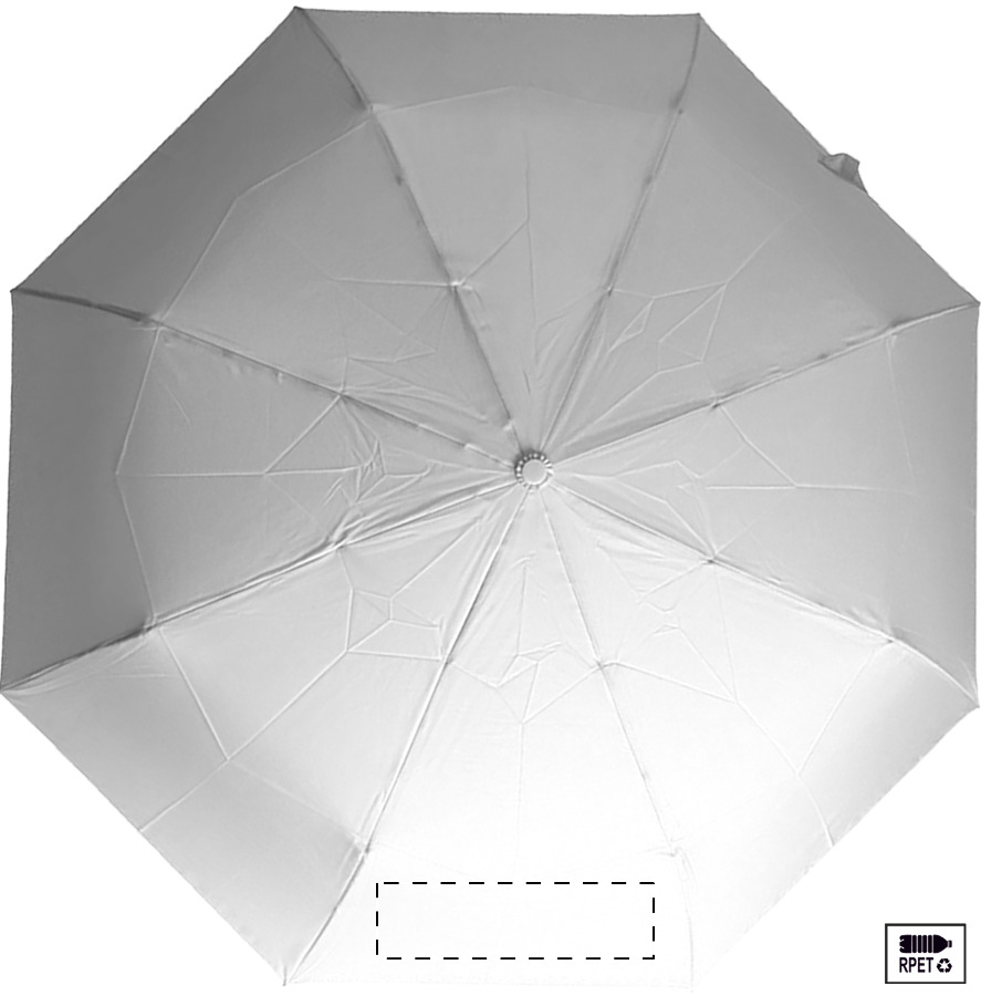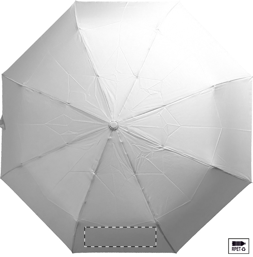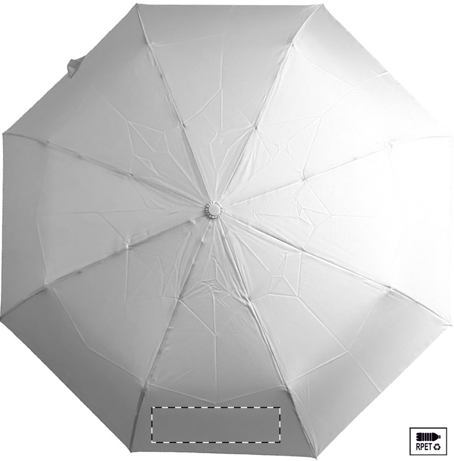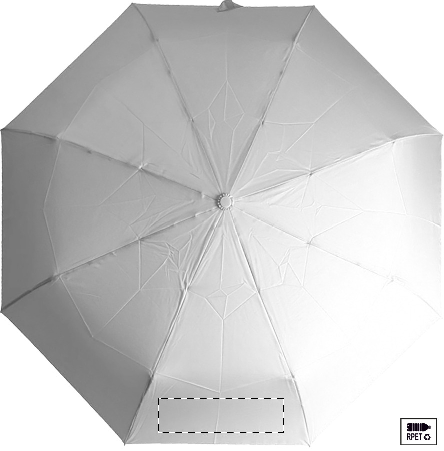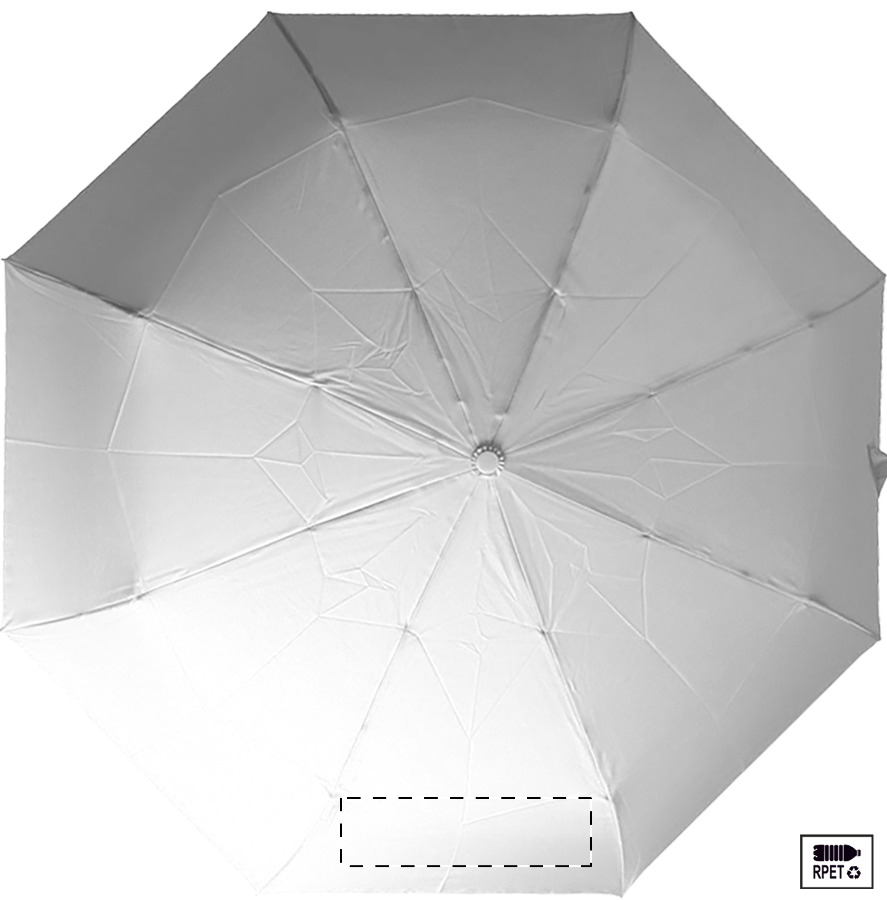 Velký automatický skládací deštník odolný proti větru s 8 panely v pouzdru odpovídající barvy. S kovovým rámem, sklolaminátovými žebry a ABS rukojetí s poutkem na ruku. Pongee 190T RPET. S výrazným štítkem RPET.