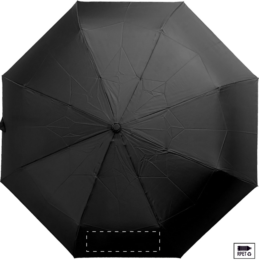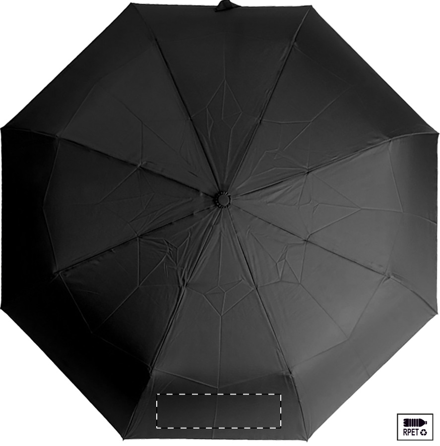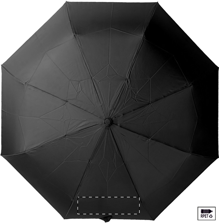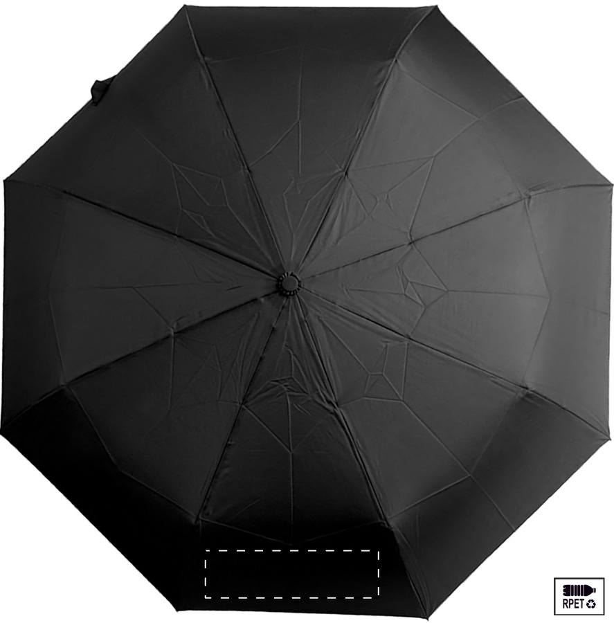 Velký automatický skládací deštník odolný proti větru s 8 panely v pouzdru odpovídající barvy. S kovovým rámem, sklolaminátovými žebry a ABS rukojetí s poutkem na ruku. Pongee 190T RPET. S výrazným štítkem RPET.