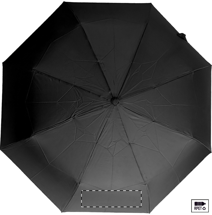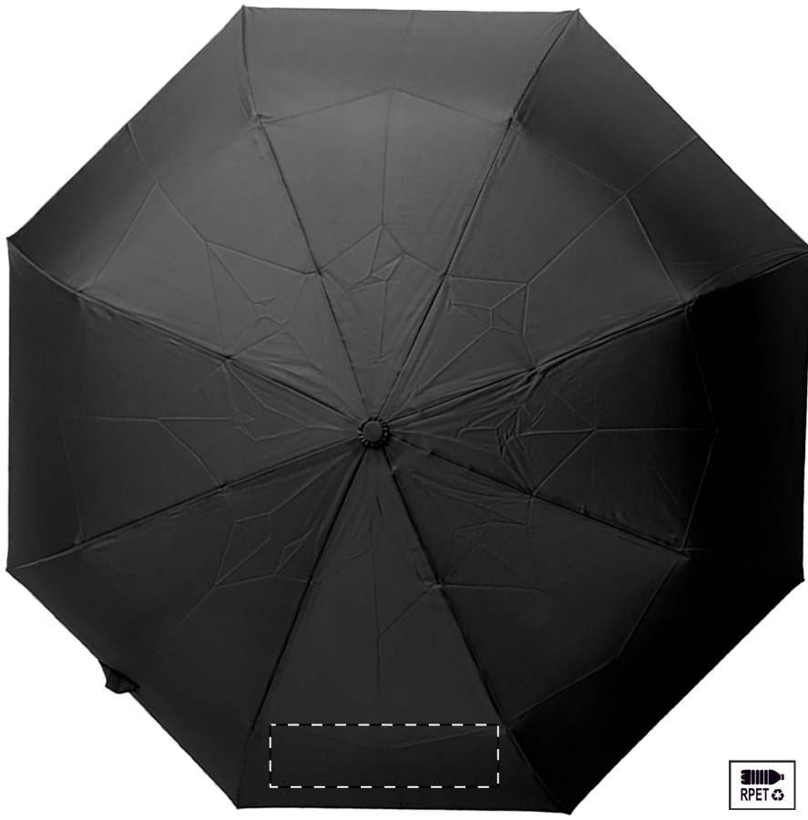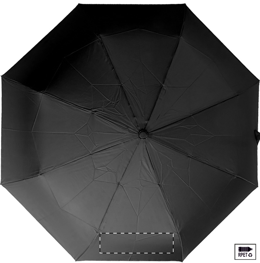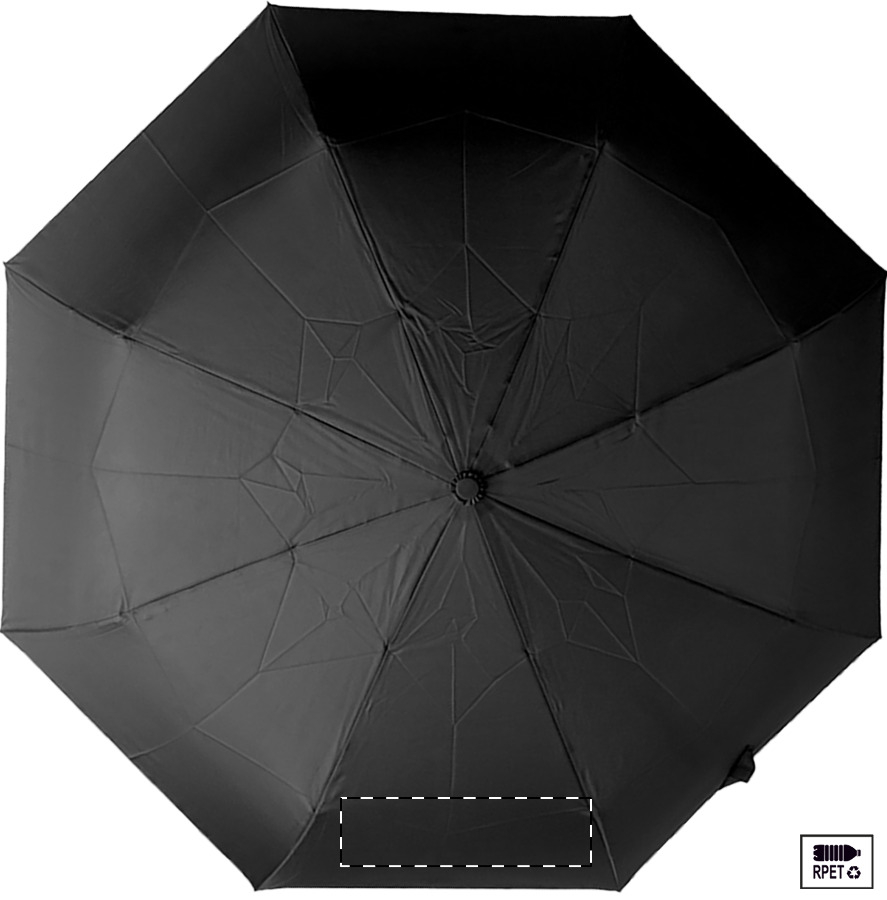 Velký automatický skládací deštník odolný proti větru s 8 panely v pouzdru odpovídající barvy. S kovovým rámem, sklolaminátovými žebry a ABS rukojetí s poutkem na ruku. Pongee 190T RPET. S výrazným štítkem RPET.