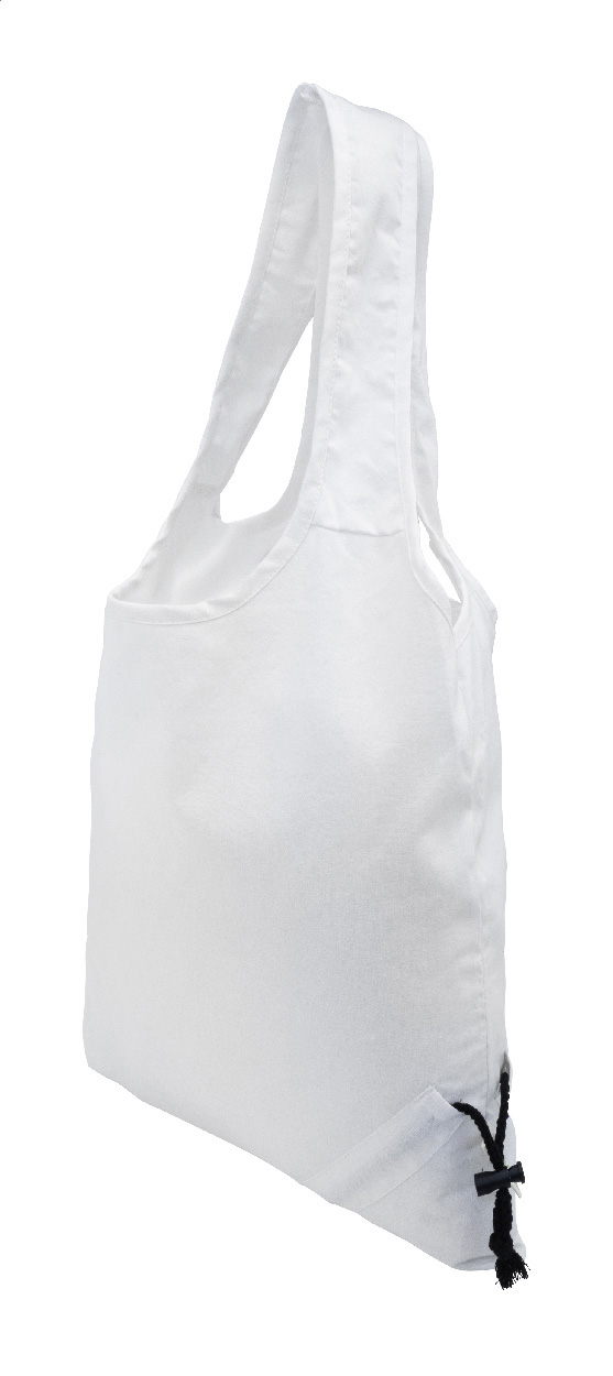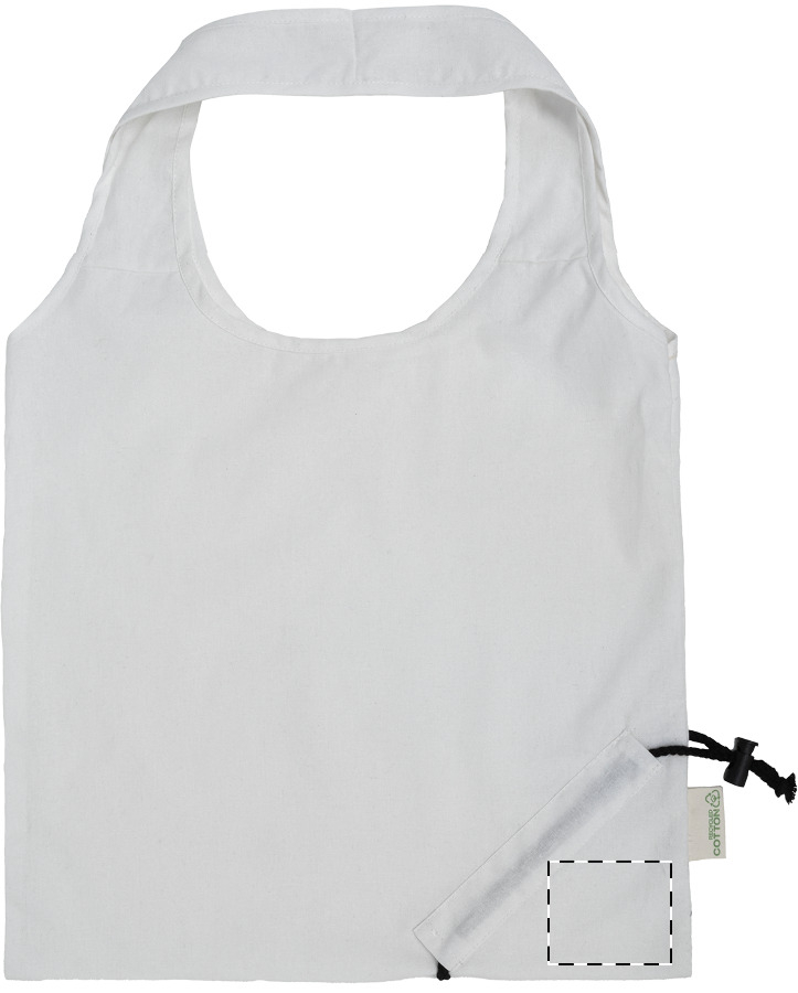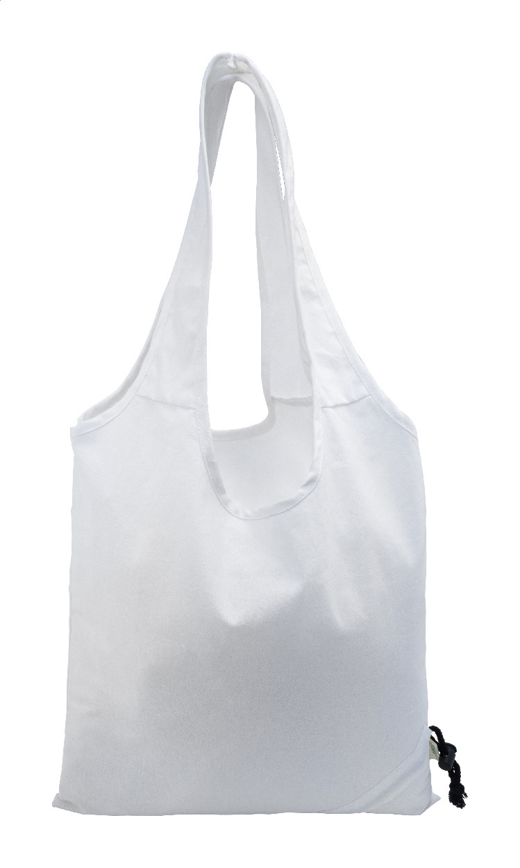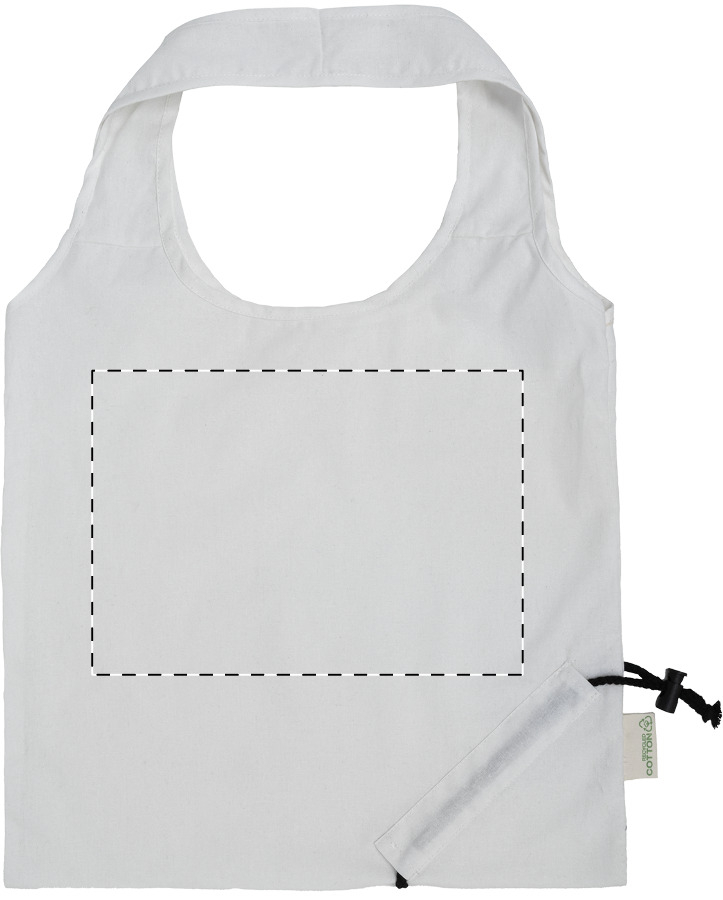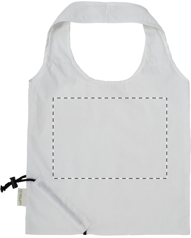 Skládací nákupní taška ze 70 % recyklované bavlny a 30 % polyesteru RPET, 140 g/m². S výrazným štítkem z recyklované bavlny.