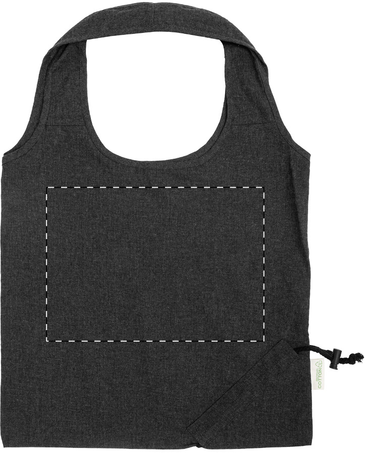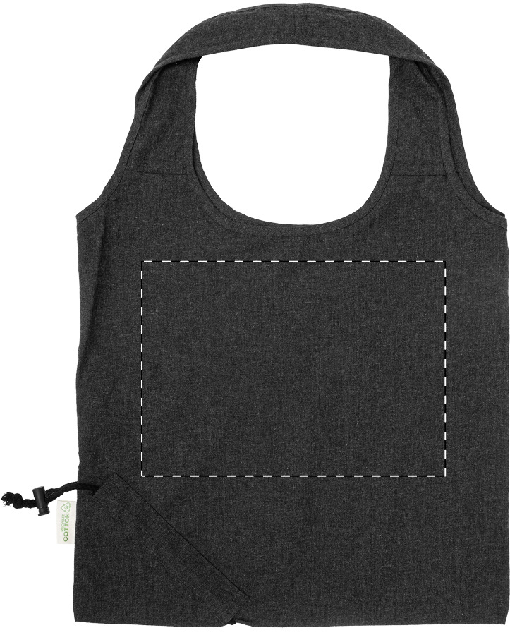 Skládací nákupní taška ze 70 % recyklované bavlny a 30 % polyesteru RPET, 140 g/m². S výrazným štítkem z recyklované bavlny.
