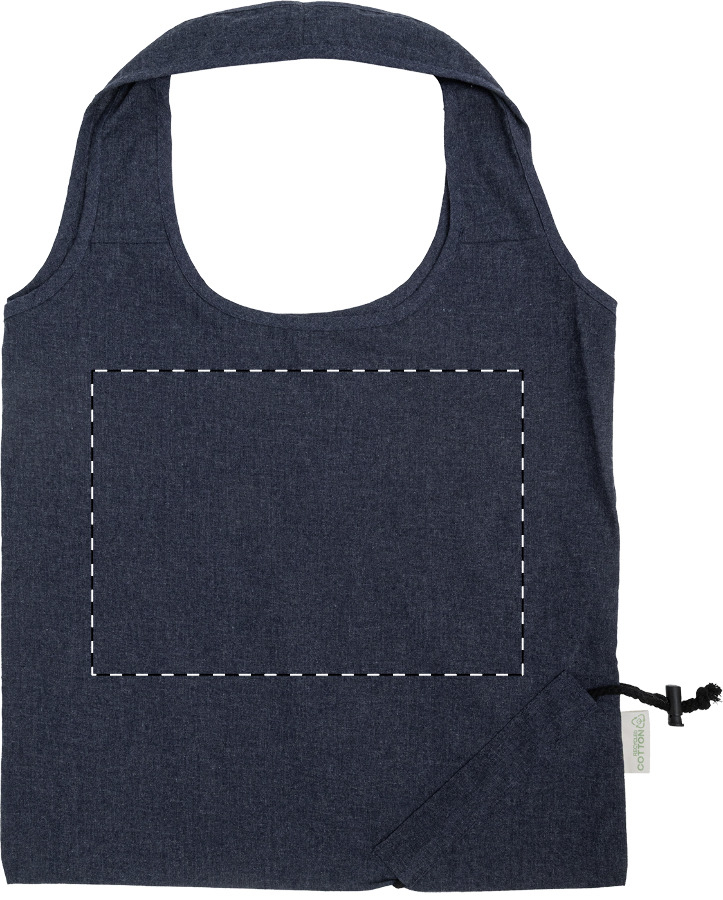 Skládací nákupní taška ze 70 % recyklované bavlny a 30 % polyesteru RPET, 140 g/m². S výrazným štítkem z recyklované bavlny.