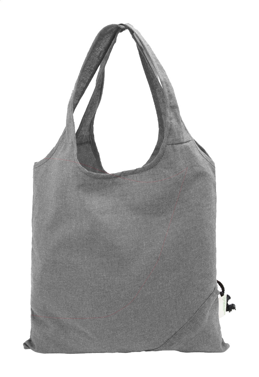 Skládací nákupní taška ze 70 % recyklované bavlny a 30 % polyesteru RPET, 140 g/m². S výrazným štítkem z recyklované bavlny.
