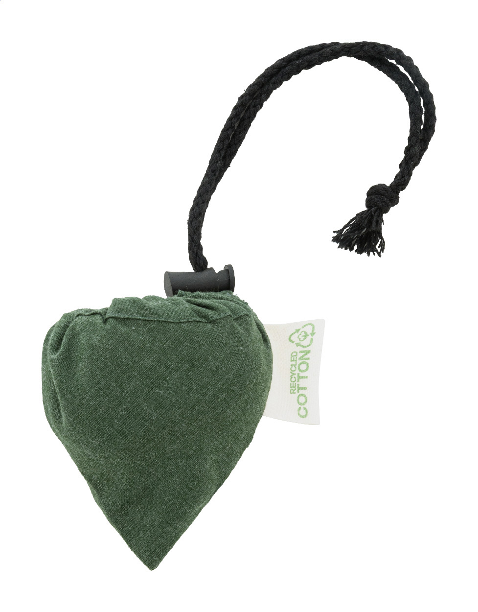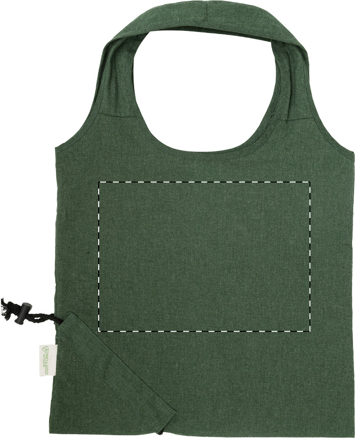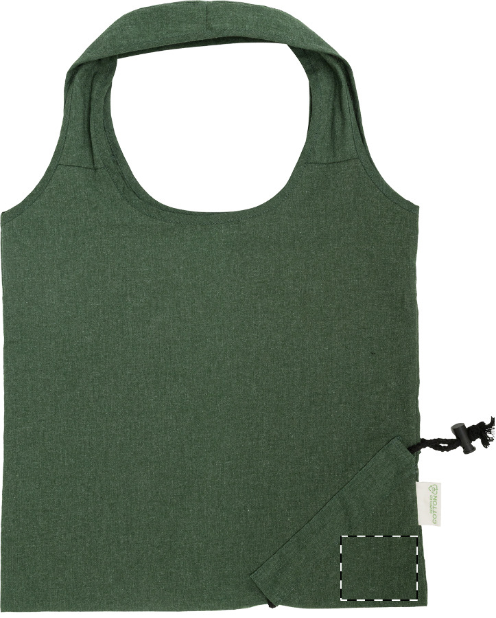 Skládací nákupní taška ze 70 % recyklované bavlny a 30 % polyesteru RPET, 140 g/m². S výrazným štítkem z recyklované bavlny.