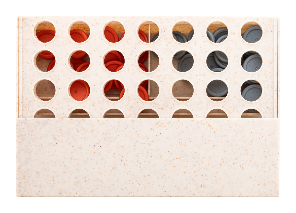 Ekologická plastová desková hra z pšeničné slámy se skládací vertikální deskou a 42 žetony. Během hry se hráči střídají v házení žetonů na hrací plochu a snaží se srovnat čtyři žetony za sebou.