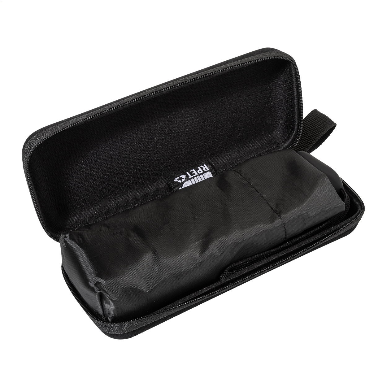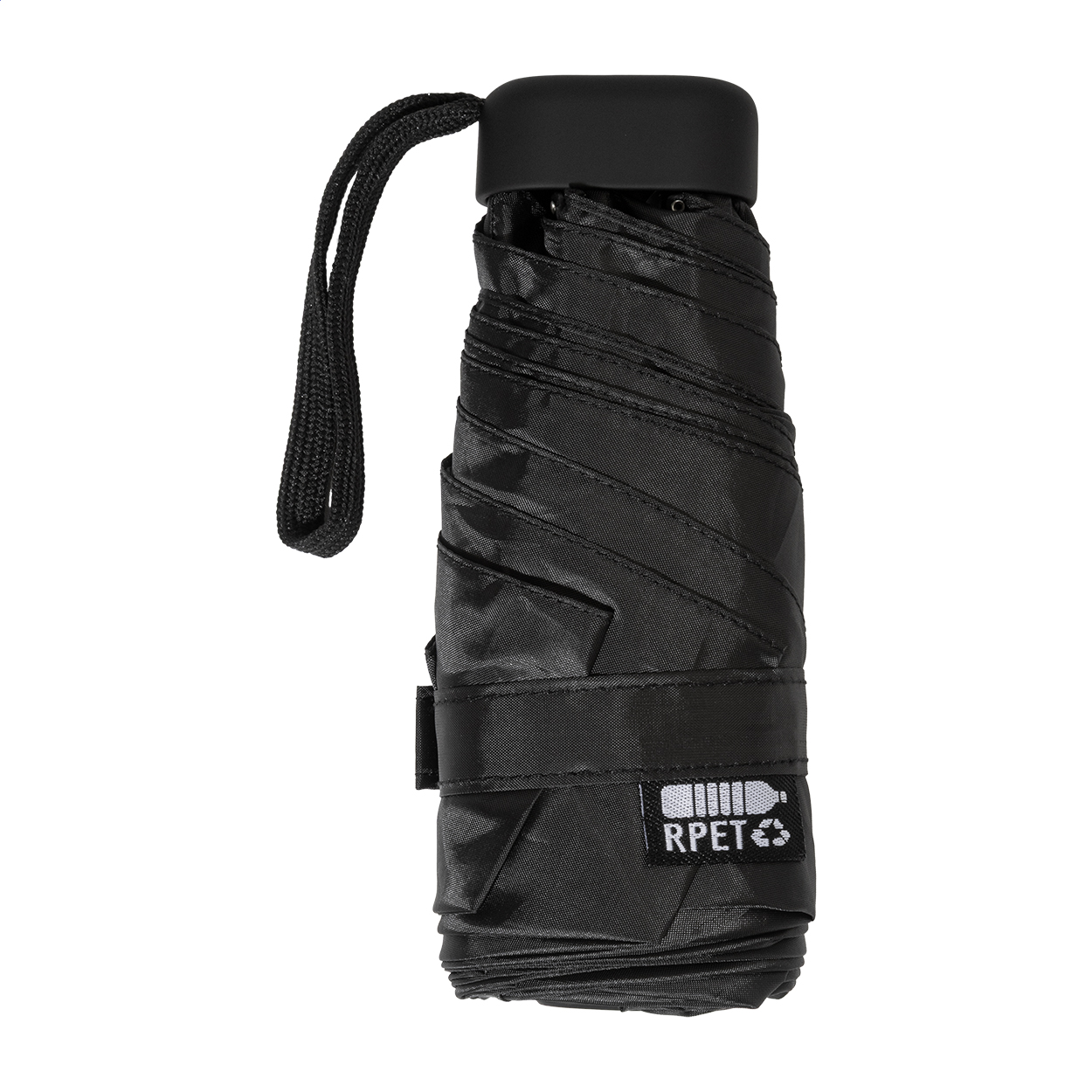 Manuální, větruodolný 3-skládací mini deštník se 6 panely v barevně sladěném pouzdře a tvrdým pouzdrem z EVA na zip. S kovovým rámem, žebry z sklolaminátu a kompaktní rukojetí s poutkem na ruku. 190T RPET pongee s charakteristickým RPET štítkem.