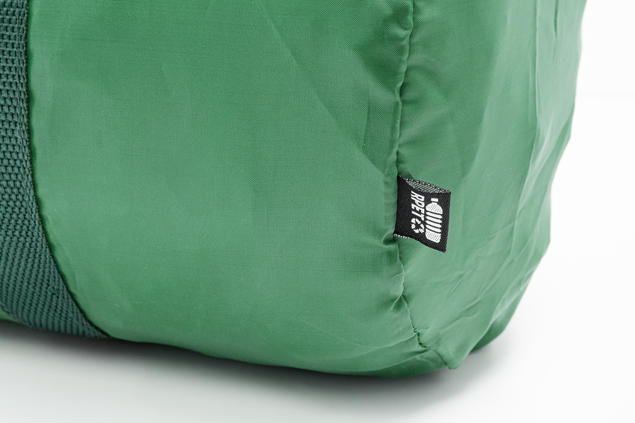 Sportovní taška RPET s hlavní přihrádkou na zip, přední kapsou na zip a dlouhými uchy. Polyester RPET 190T s výrazným štítkem RPET.