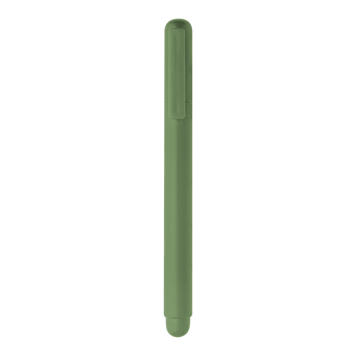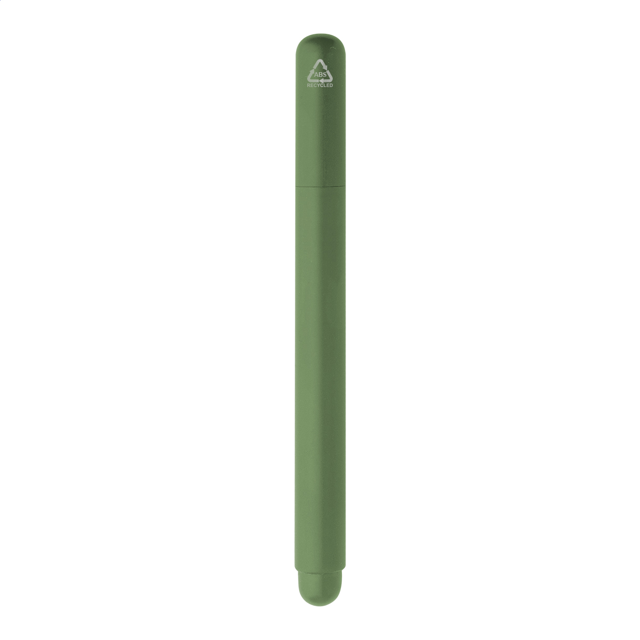 Gelové pero z recyklovaného ABS materiálu s víčkem. S modrou gelovou náplní.