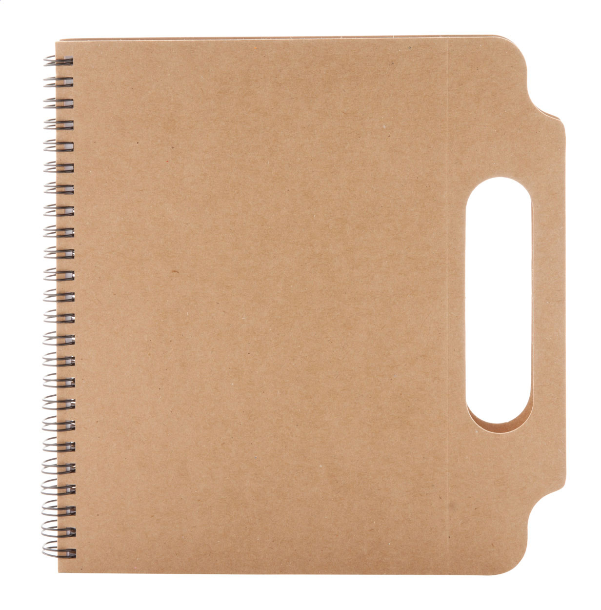 Poznámkový blok z recyklovaného papíru s kroužkovou vazbou, 70 linkovanými listy, kuličkovým perem a samolepicími poznámkovými lístky (125 malých a 25 velkých).