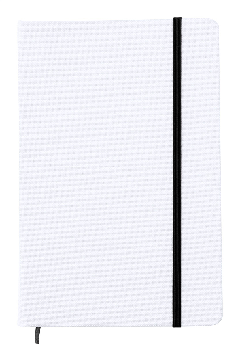 Blok potažený polyesterem 600D RPET se 100 prázdnými listy, barevnou gumičkou a záložkou. Velikost A5. Ideální pro sublimační tisk