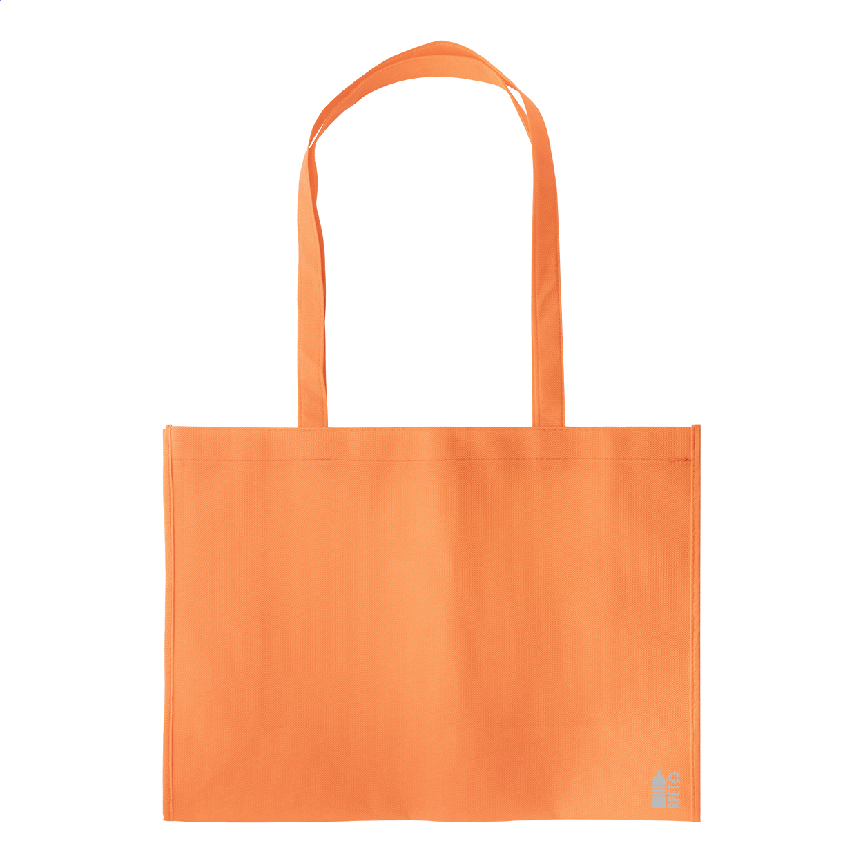 Nákupní taška z netkané textilie RPET s klínem a dlouhými uchy, 80 g/m². S výrazným logem RPET.