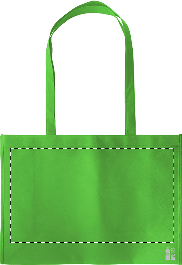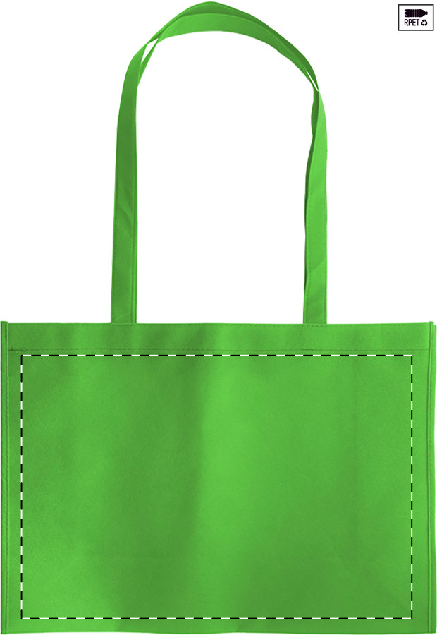 Nákupní taška z netkané textilie RPET s klínem a dlouhými uchy, 80 g/m². S výrazným logem RPET.