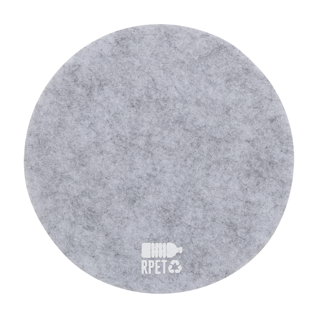 Kulatý plstěný podtácek RPET. S výrazným znakem RPET.