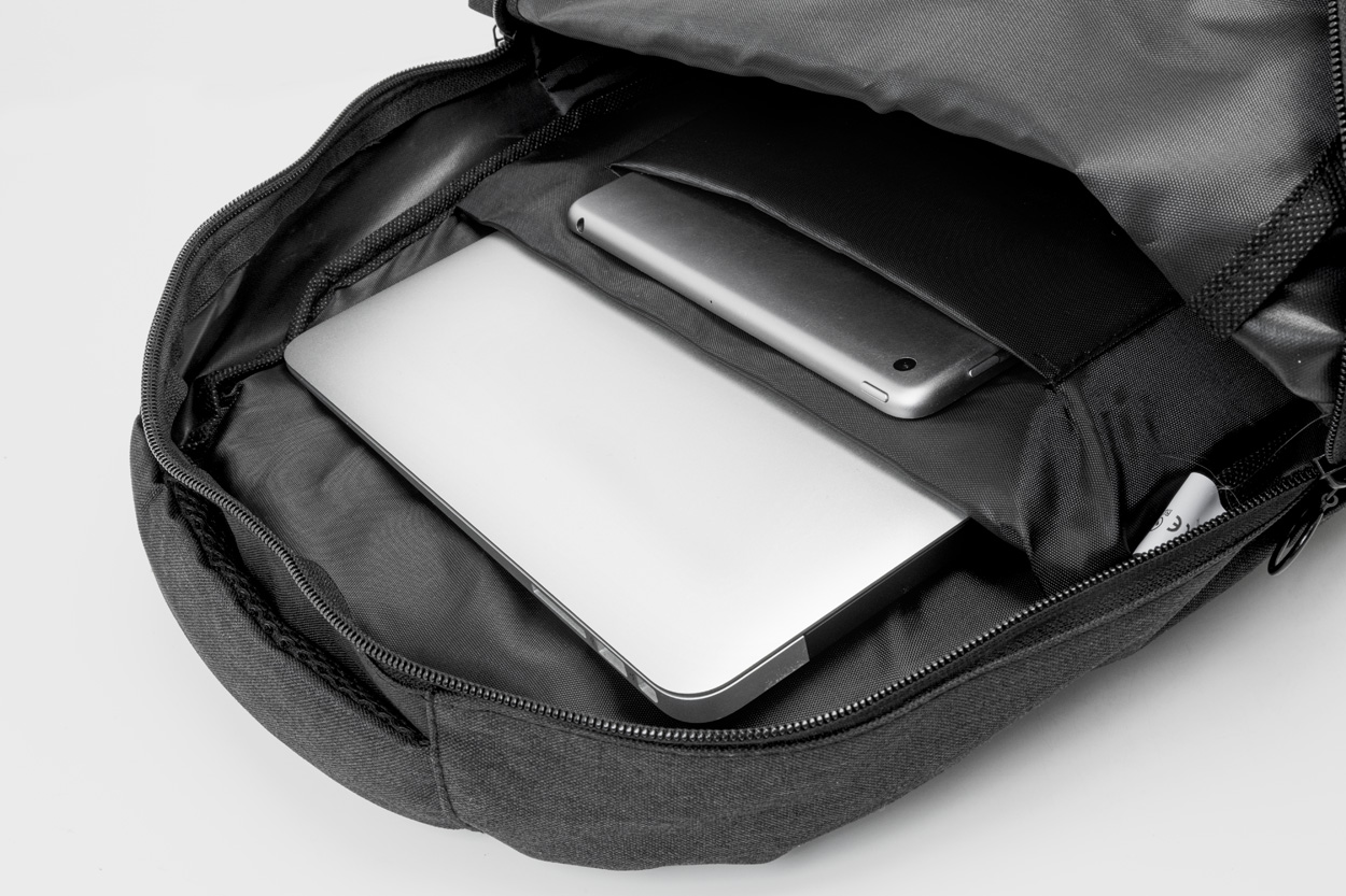 Praktické přihrádky: Batoh je vybaven přihrádkami na zip, které poskytují dostatek prostoru pro všechny vaše věci. Polstrované přihrádky chrání notebook (až 15") a tablet (až 10").