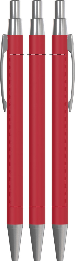 Elegantní červené kuličkové pero s hliníkovým tělem zaujme matným pogumovaným povrchem, který je velmi příjemný na dotek. Speciální úprava materiálu umožňuje precizní gravírování, pod nímž vynikne lesklý motiv.