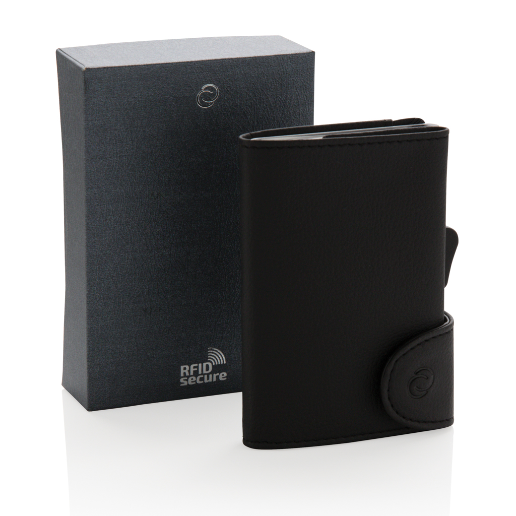 Hliníkový držák na karty SECURITO s peněženkou, kapacita až 7 karet - černá