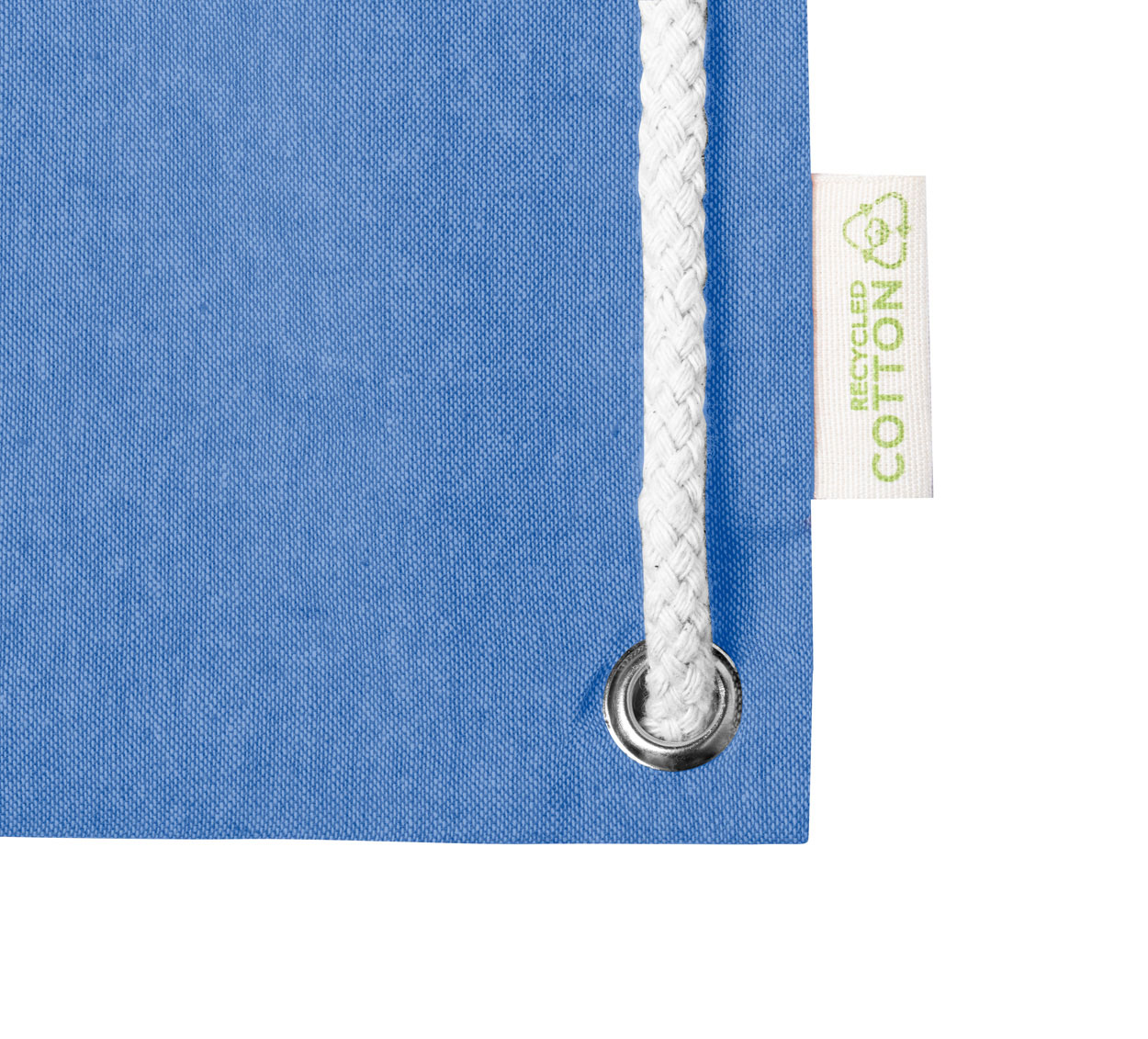 Látková taška z recyklované bavlny s dlouhými uchy a pletenými šňůrkami, díky kterým je možné tašku nosit také jako batoh. 100% recyklovaná bavlna, gramáž látky 140 g/m2.