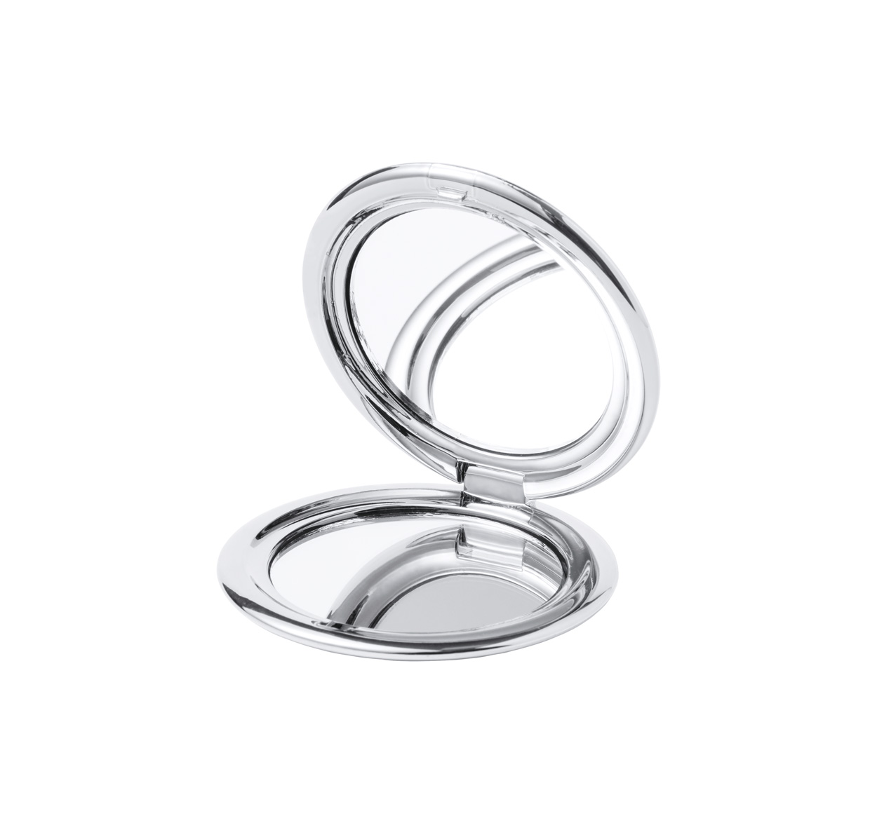 Kapesní zrcátko potažené ABS plastem s metalickým povrchem. S normálním a zvětšovacím zrcátkem.