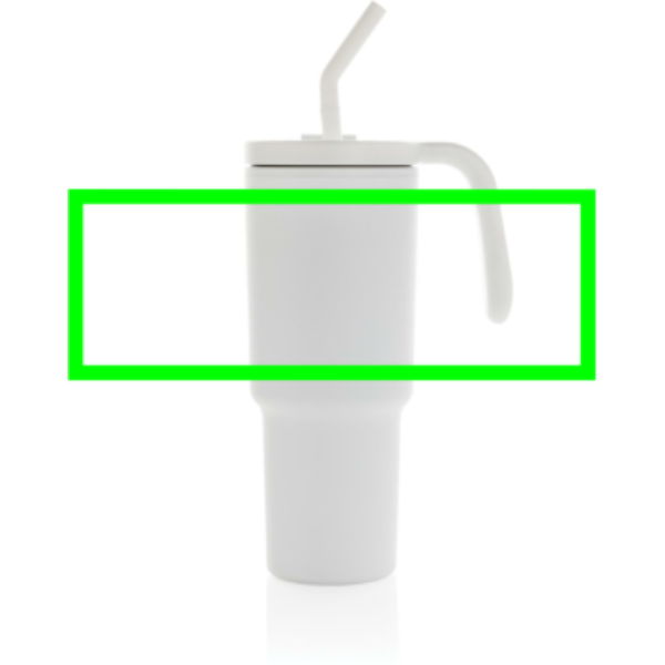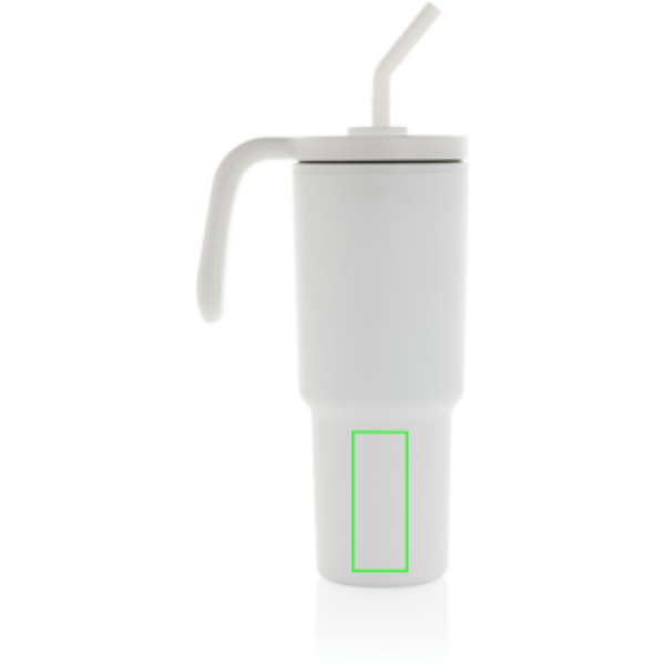Bílý nerezový hrnek o objemu 900 ml kombinuje čistý minimalistický design s funkčností recyklované oceli s certifikací RCS. Variabilní víčko se třemi polohami umožňuje pohodlné pití brčkem, využití náustku nebo úplné uzavření, což účinně předchází nechtěnému úniku tekutiny při manipulaci.