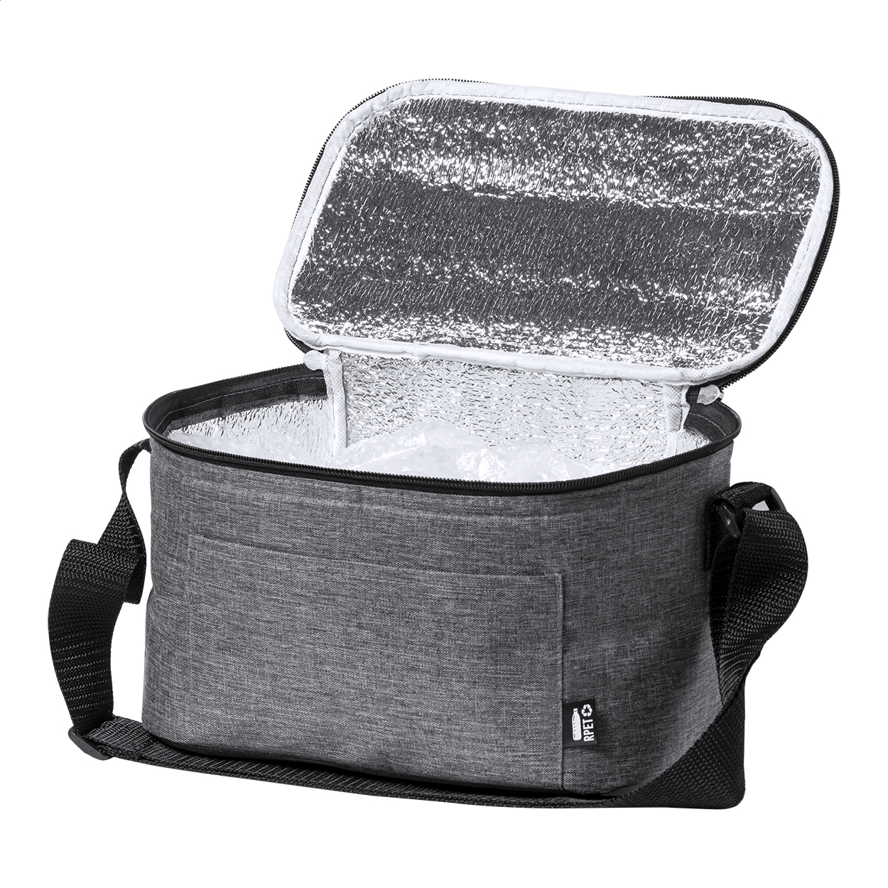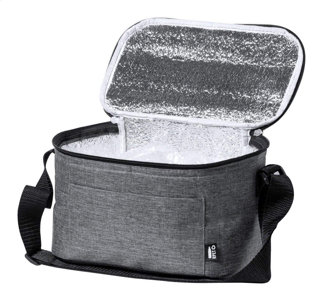 Chladicí taška se zavíráním na zip a hliníkovou vložkou pro udržení teploty až 6 ks 0,33l plechovek. S přední kapsou a nastavitelným ramenním popruhem. 600D RPET polyester s výrazným štítkem RPET.