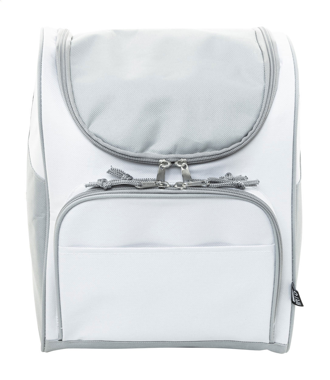 Chladicí taška RPET s hliníkovým polstrováním. Se 2 přihrádkami na zip, malou přední kapsou a nastavitelným ramenním popruhem. 600D RPET polyester s výrazným štítkem RPET.