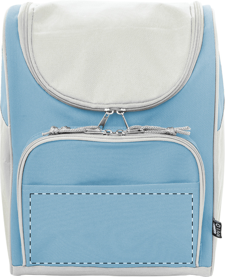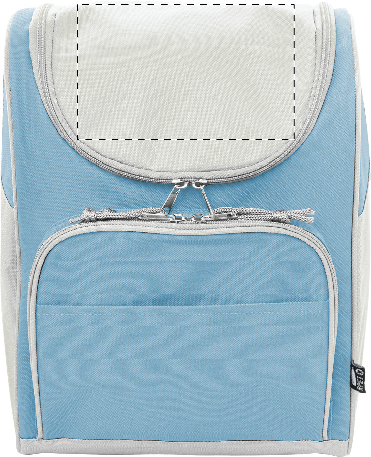 Světle modrá chladicí taška z recyklovaného materiálu přináší svěží vzhled a vysokou funkčnost na piknik i delší cestování. Hliníkové polstrování udržuje nápoje v optimální teplotě a chrání je před okolním teplem.