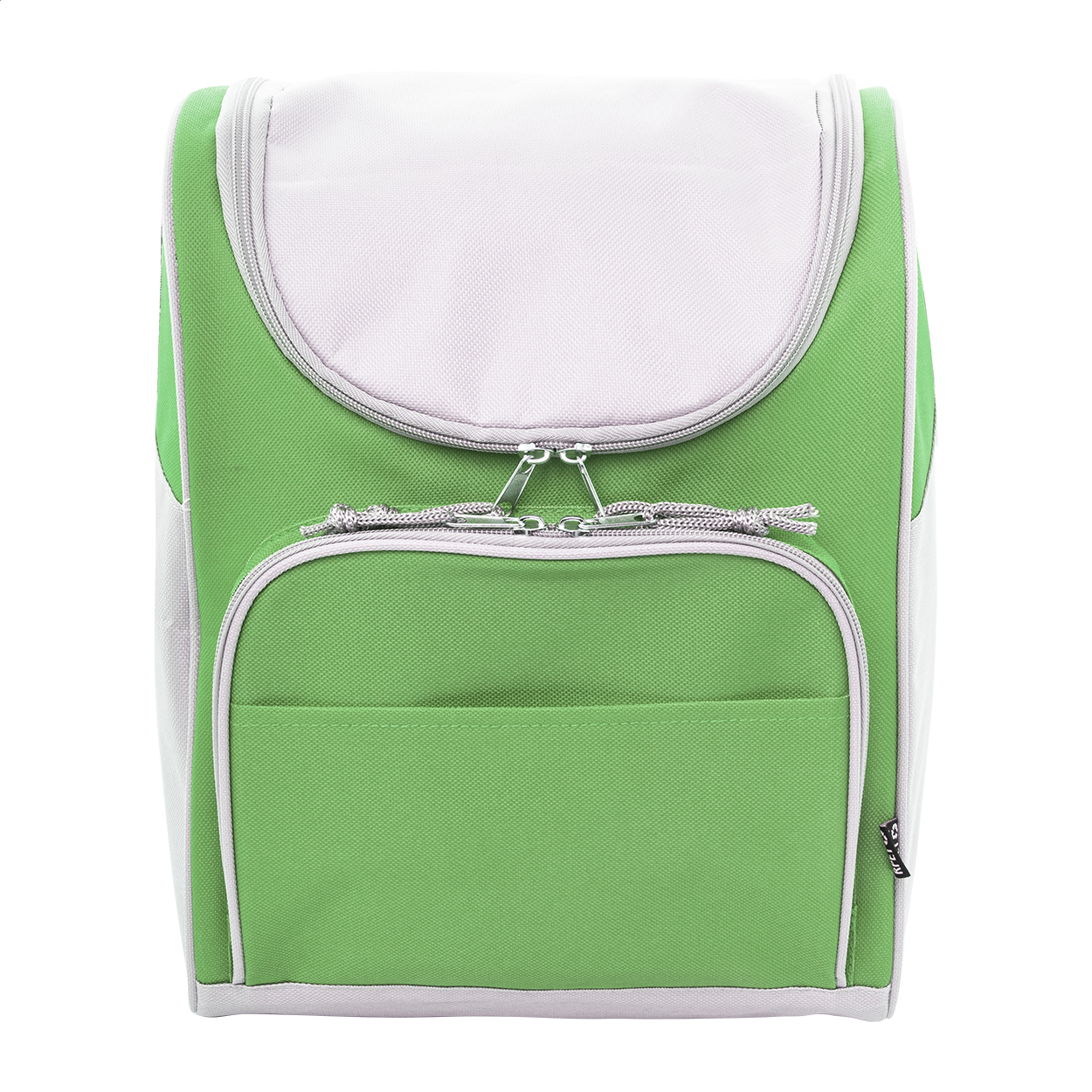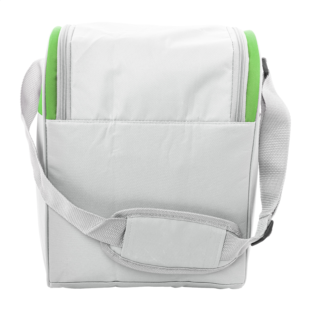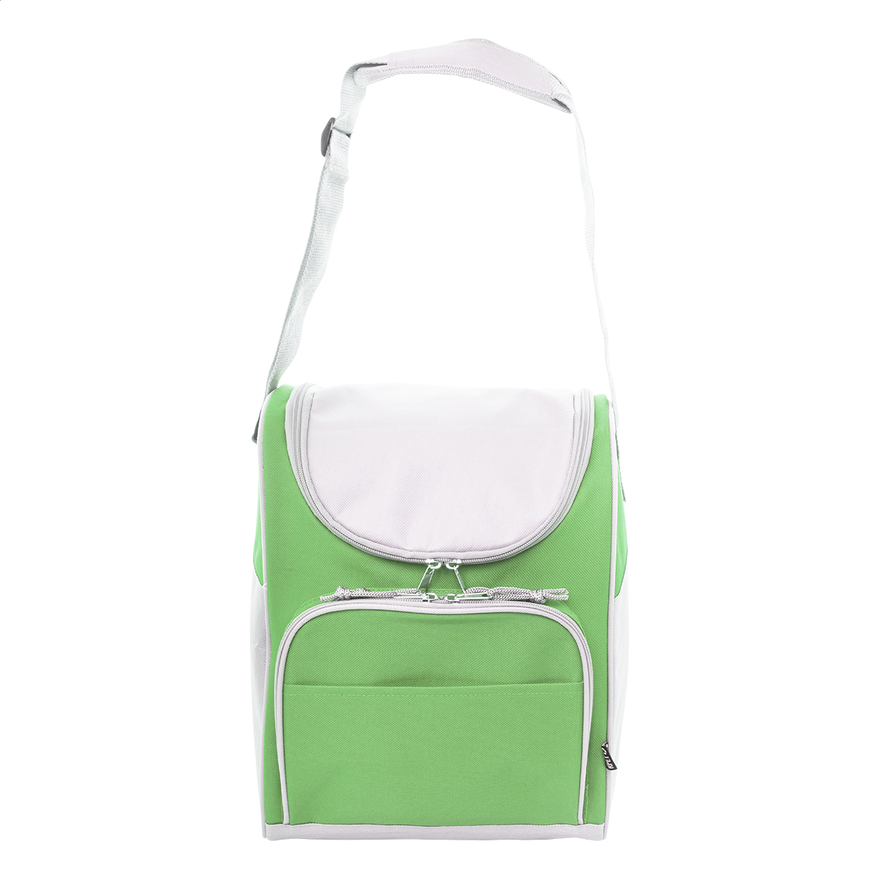 Chladicí taška RPET s hliníkovým polstrováním. Se 2 přihrádkami na zip, malou přední kapsou a nastavitelným ramenním popruhem. 600D RPET polyester s výrazným štítkem RPET.