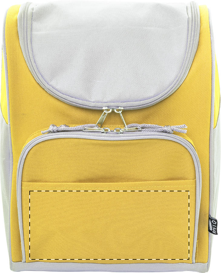 Zářivě žlutá chladicí taška představuje praktického společníka pro letní výlety i nákupy. Vyrobena z recyklovaného polyesteru s hliníkovým polstrováním, udrží potraviny a nápoje v optimální teplotě po dlouhou dobu.