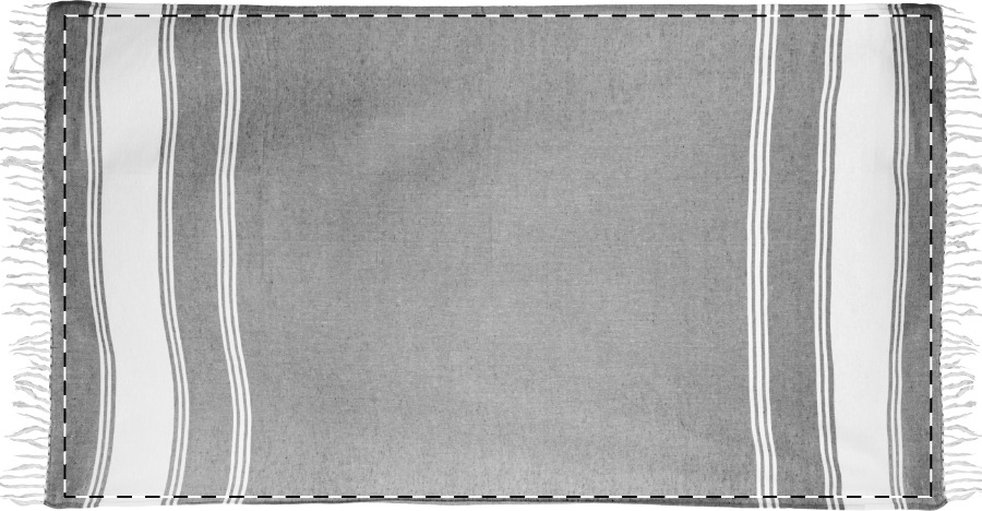 Dvoubarevný pruhovaný plážový ručník pareo ze 70% bavlny a 30% polyesteru. 210 g/m².