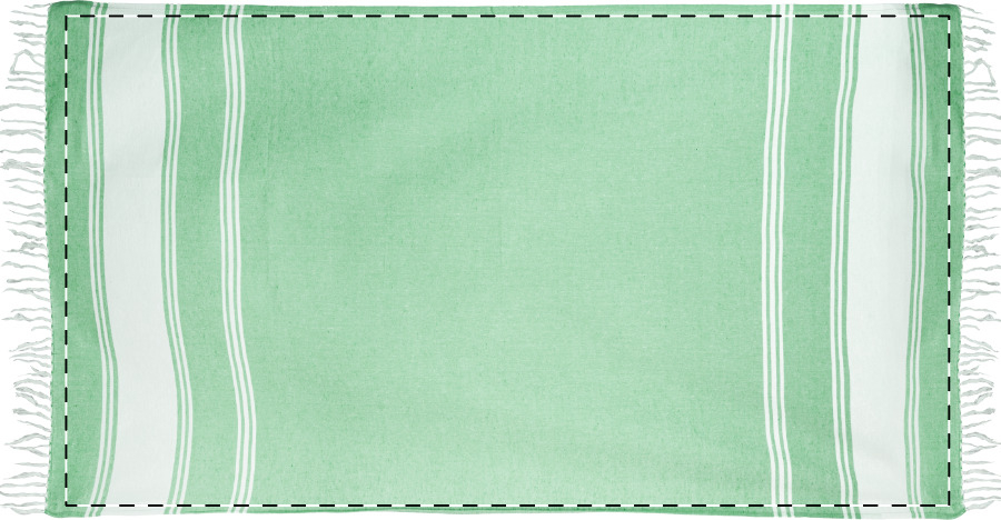 Dvoubarevný pruhovaný plážový ručník pareo ze 70% bavlny a 30% polyesteru. 210 g/m².