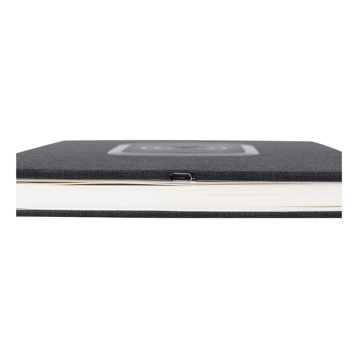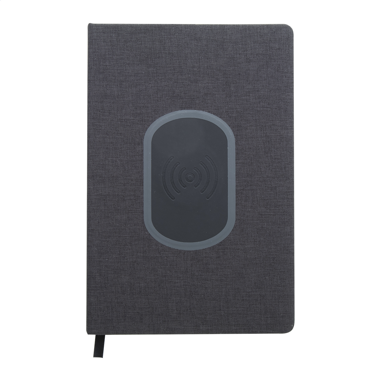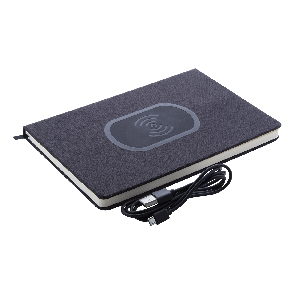 Poznámkový blok formátu A5 s deskami z polyesteru (300D) s vestavěnou bezdrátovou nabíječkou. Blok obsahuje 80 linkovaných listů. Max. výstup 1000 mA. Včetně nabíjecího USB kabelu.