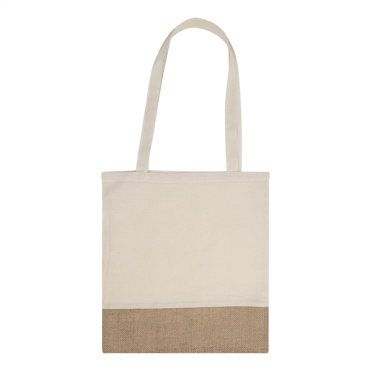Nákupní taška z bavlny s dlouhými uchy a dnem z juty. Gramáž látky 120 g/m2.