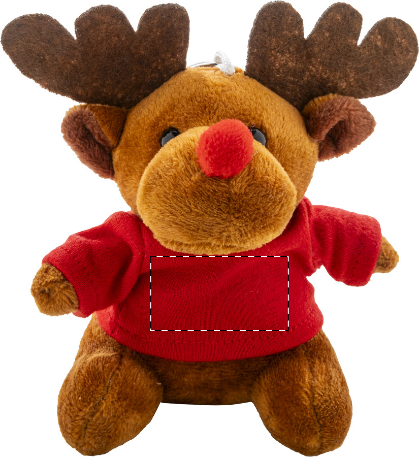 Plyšový vánoční přívěsek na klíče s motivem soba a tričkem na potisk.